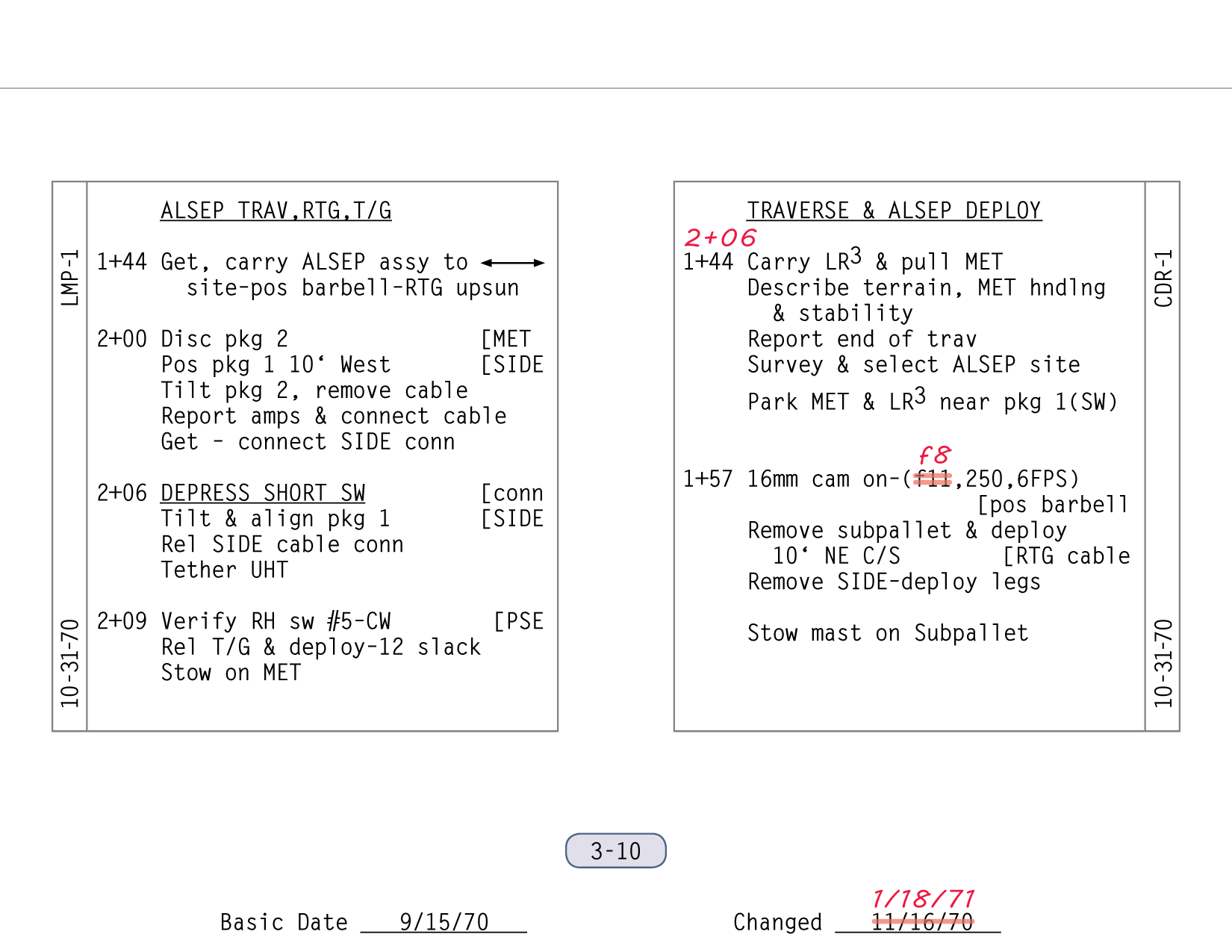 116:03:54 Shepard: Okay. (Long Pause; adjusting the settings on the 16-mm as per checklist) f/8. (one 2)50th (of a second shutter speed), six frames per second. (Long Pause)