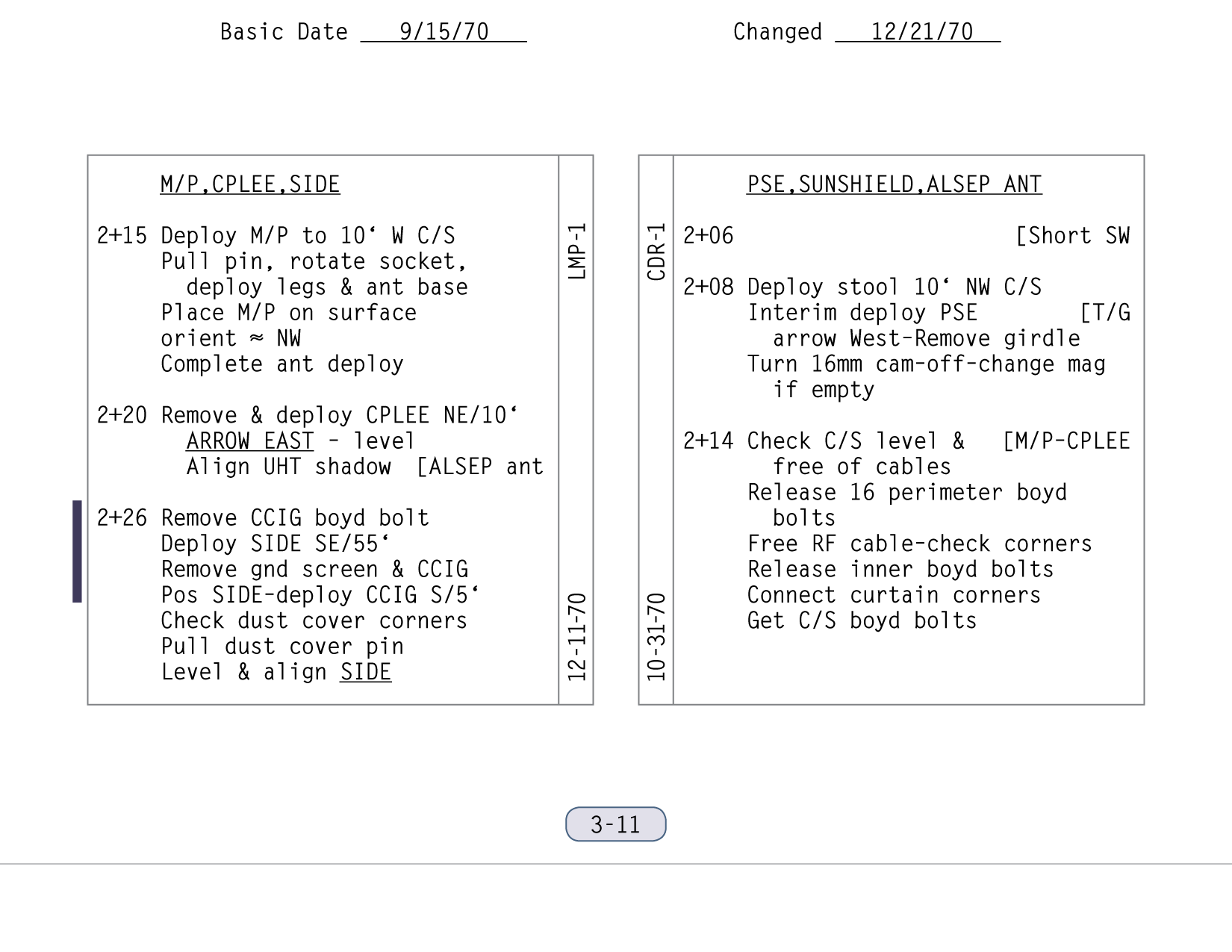 [In the 1971 Technical Debrief, the crew suggested that, if it could be done without jeopardizing the integrity of the package during the high-vibration of launch, it would be a good idea to eliminate the Boyd bolt that was relatively inaccessible.]