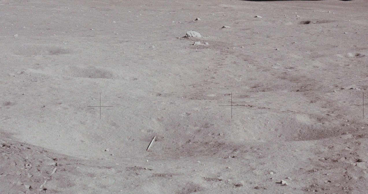 [Mitchell - "That could be, too. But, remember, the main thing we were looking for here was ejecta from Cone Crater. And, so, presumably, unless it was completely beneath the ejecta blanket, it should have been part of that ejecta blanket. I guess I don't really know what their rationale was, but they wanted the in-place rocks and fillets and things that seemed to be a little bit buried and, invariably when we did that, we'd pull up a lot bigger rock than it looked like on the surface."]