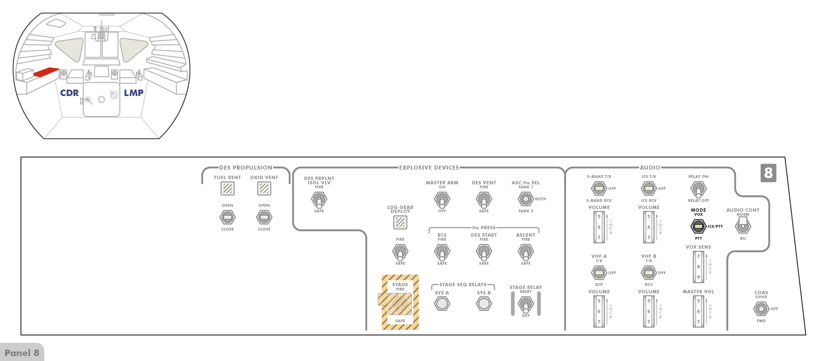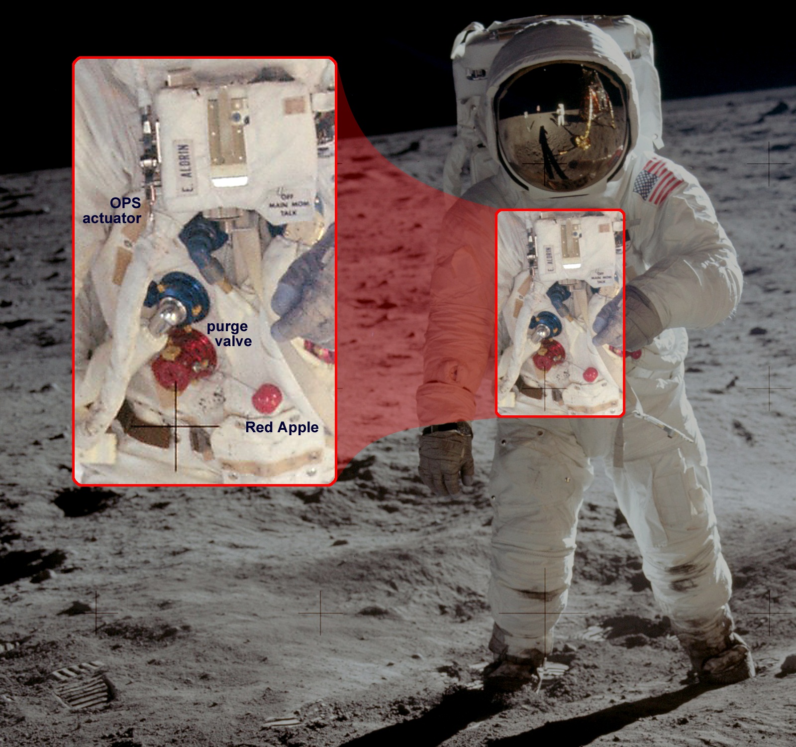 [Charlie Duke (183 cm) used the overhead valve on Apollo 16 and Neil Armstrong (180 cm) did so for the Apollo 11 jettison. Al and Ed are both 180 cm tall.]