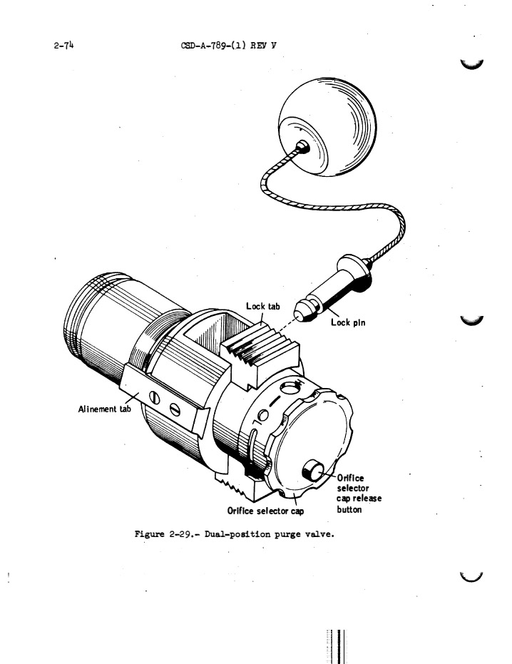 [Mitchell - "Well, to me the overhead valve seemed easier but I notice, in this case, Al preferred the forward valve (mounted on the hatch). It was a bear (meaning it was difficult) reaching down and getting to that valve on the forward hatch. Always seemed easier to me to go the other way."]
