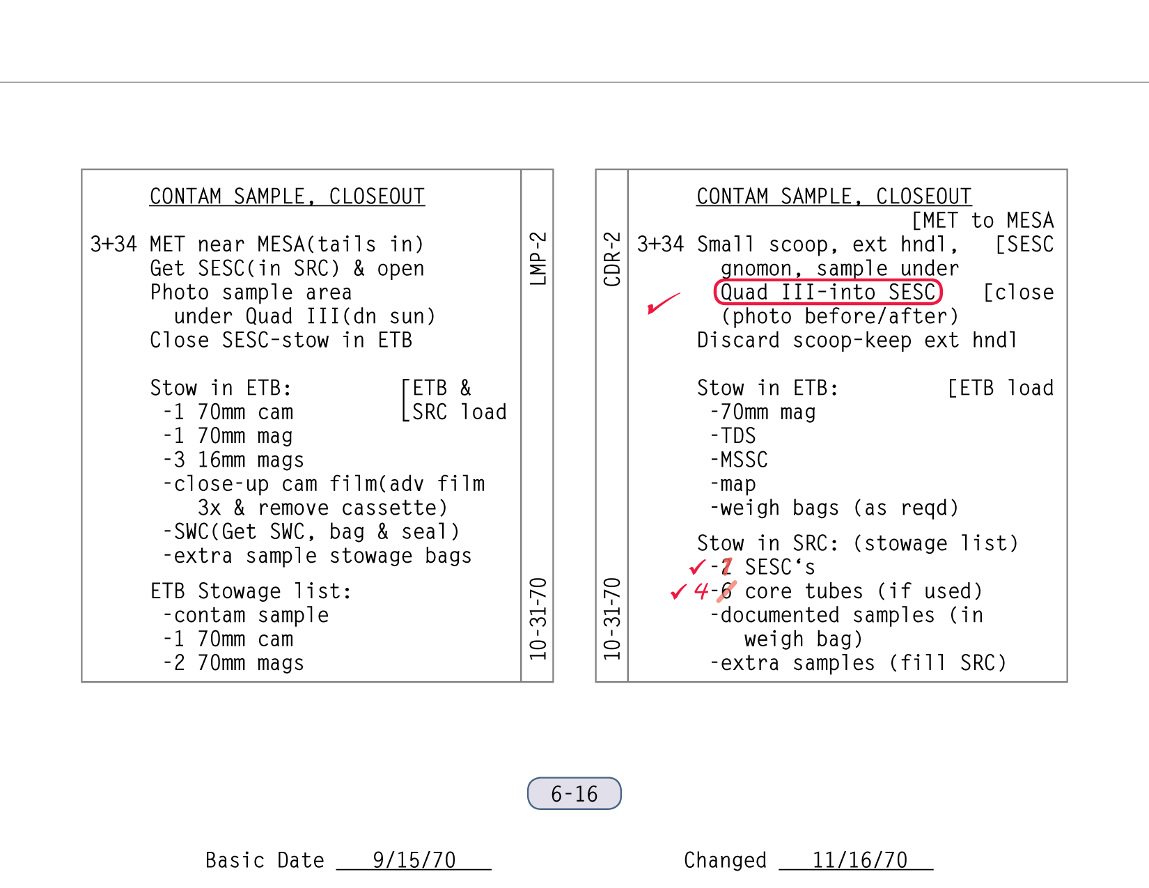 [Each of them is wearing an Omega Speedmaster Professional on a long, sleeve strap and will use the stopwatch function to show them elapsed EVA time. They are near the middle of the righthand column on Sur 5-6.]131:08:06 Mitchell: Okay, time zero. Open the (dump valve)...