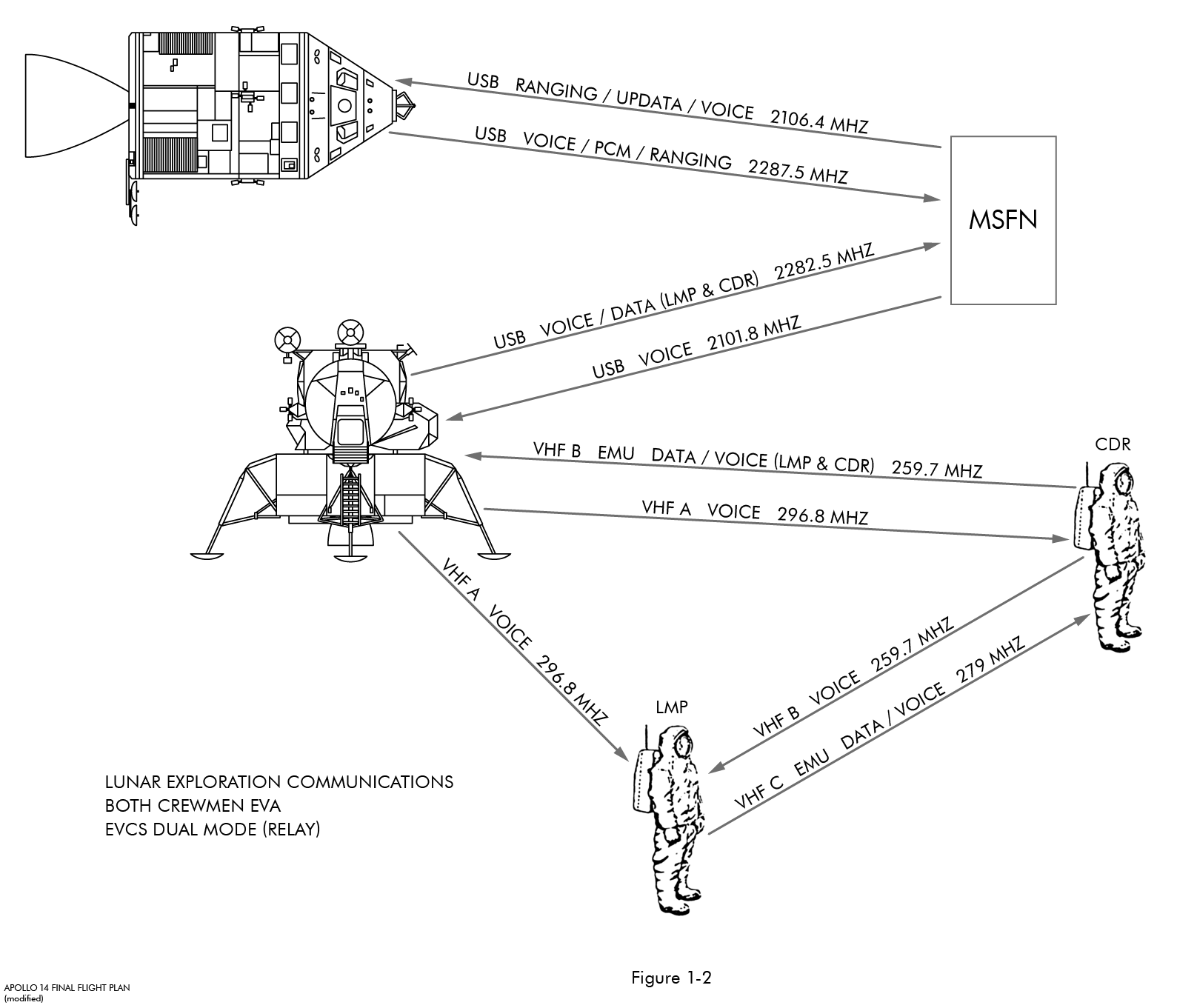 [Comm Break. The flow limiters were added to the ECS design after Apollo 12 to prevent water accumulation in the suits. See the discussion at 121:36:14.]128:33:18 Mitchell: Okay, Houston. (As per Sur 4-7) I'm changing back to power (amp), primary, and Voice/Voice.