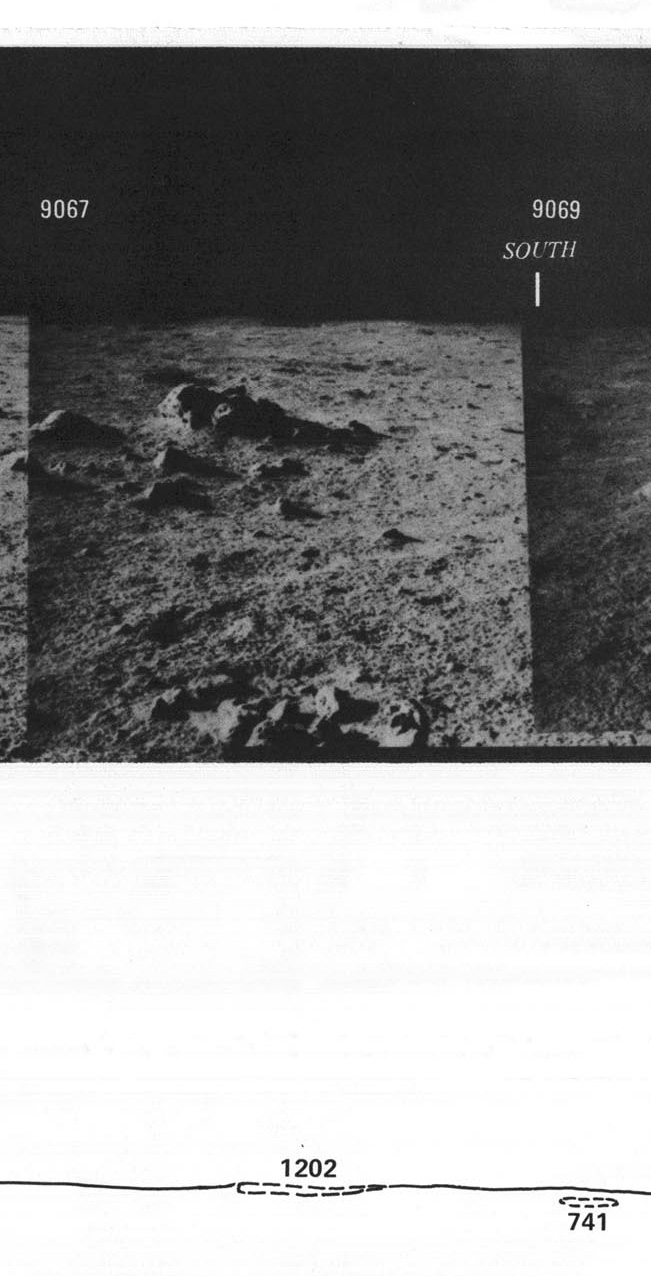 [Mitchell - "Right now, as I listen to this, I feel an enormous sense of frustration, just like I did then. It was terribly, terribly frustrating; coming up over that ridge that we were going up, and thinking, finally, that was it; and it wasn't - suddenly recognizing that, really, you just don't know where the hell you are. You know you're close. You can't be very far away. You know you got to quit and go back. It was probably one of the most frustrating periods I've ever experienced. There's no feeling of being lost. I mean, the LM is there; we can get back to the LM. It's not reaching and looking down into that bloody crater. It's terribly frustrating."]Al's C-Prime Pan ( frames AS14-64- 9098 to 9122 )[Jones - "Still, twenty years later."]