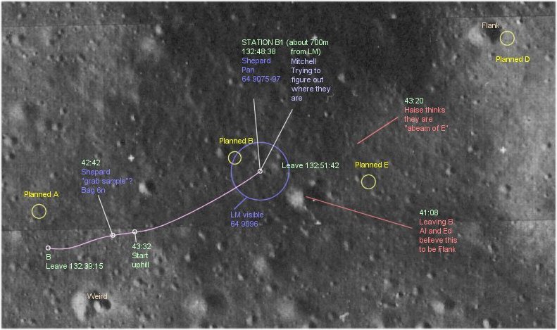 132:28:20 Shepard: It (Station B)'s way up the hill.
