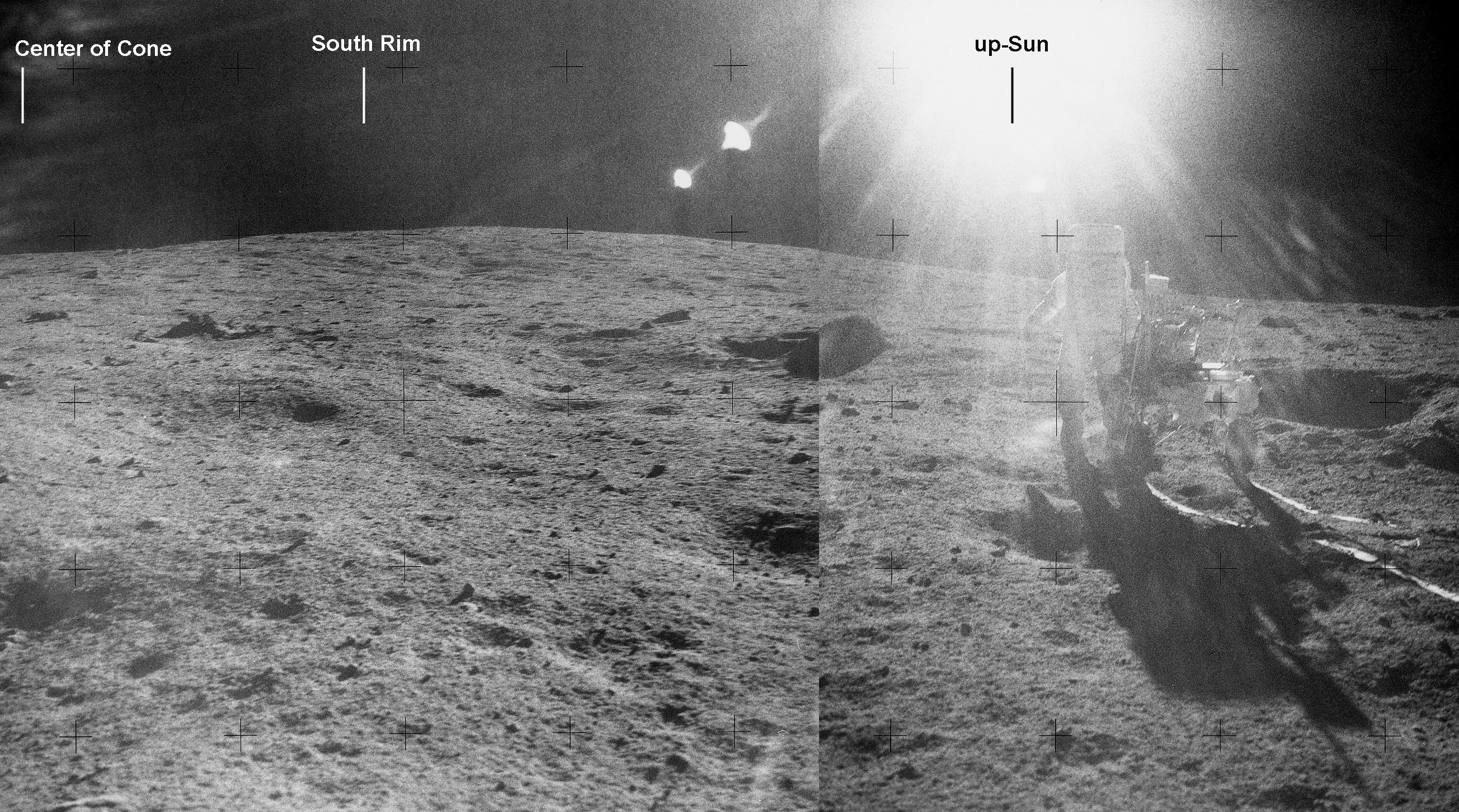 [They heard 'LM' instead of 'rim'.]133:22:51 Haise: I'm sorry. You misunderstood the question. I meant the rim of Cone Crater.