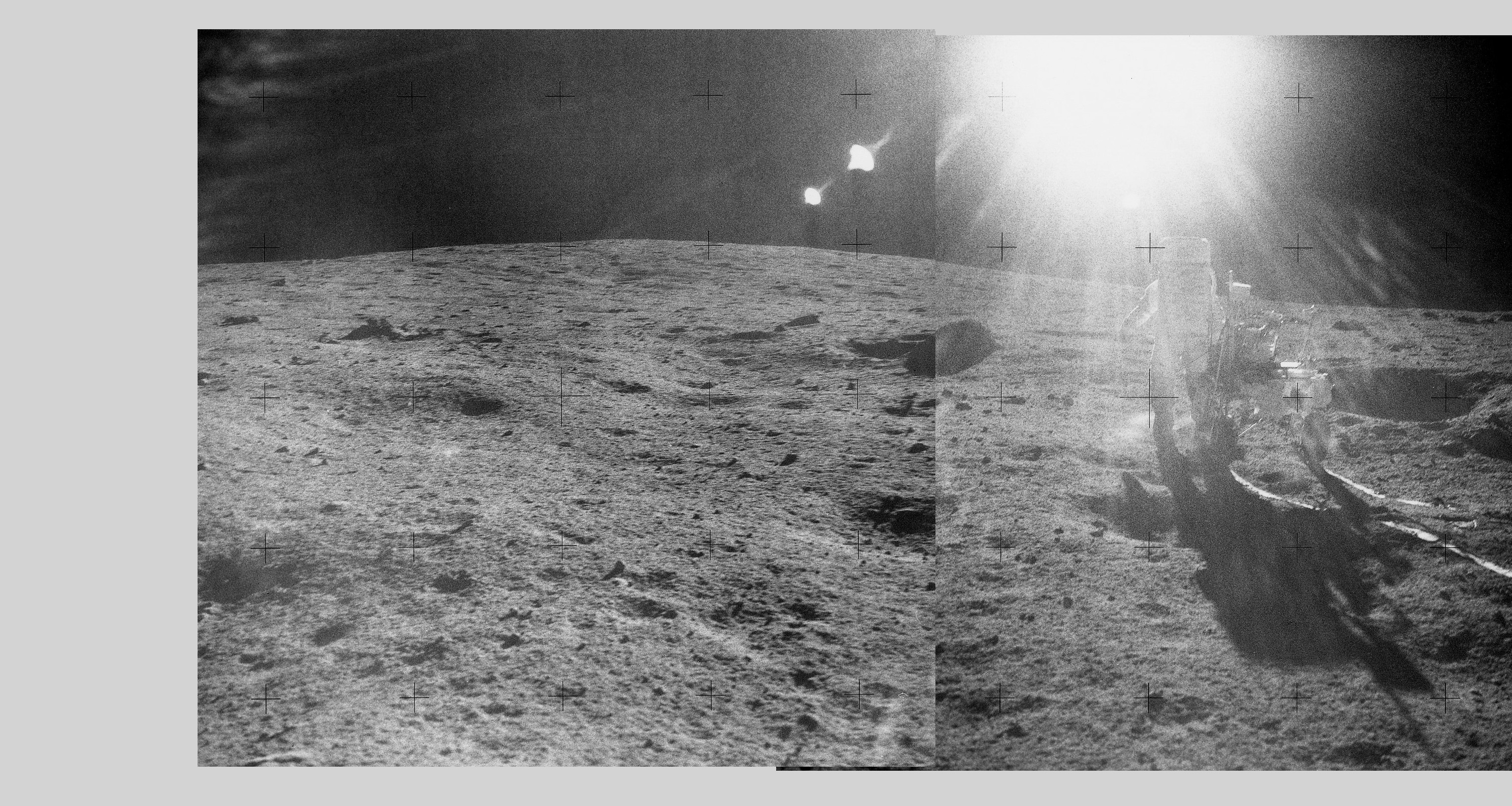 133:21:50 Shepard: Okay. We better reconnoiter here. I don't see the crater yet.