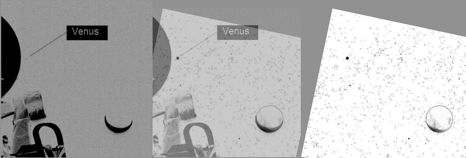 crescent Earth and the short line pointing at Venus. The L-shaped