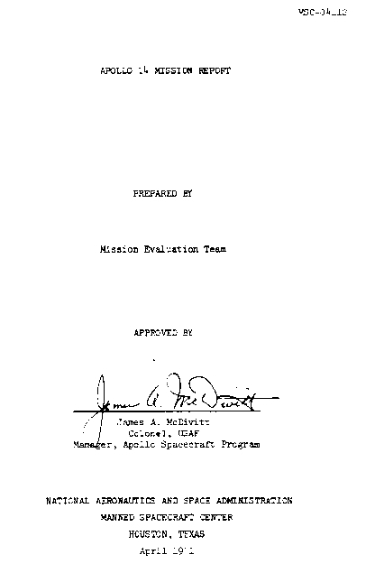 Cover Signature Page Apollo 14 Lift-off TABLE OF CONTENTS
