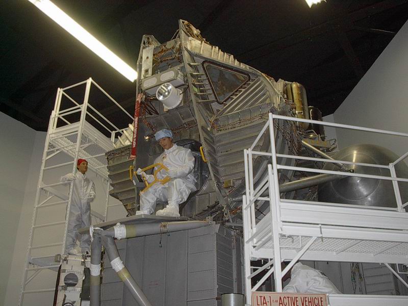"LTA-1 was probably constantly modified, and items that did not directly support the current testing or round of changes were left in place. Also, it's not surprising that lots of the weight reduction changes made in the production LMs were not included in LTA-1, probably because of the amount of rework that would have been needed. Strain and temperature sensors are located throughout the structure, reflecting LTA-1's role in dynamic testing."