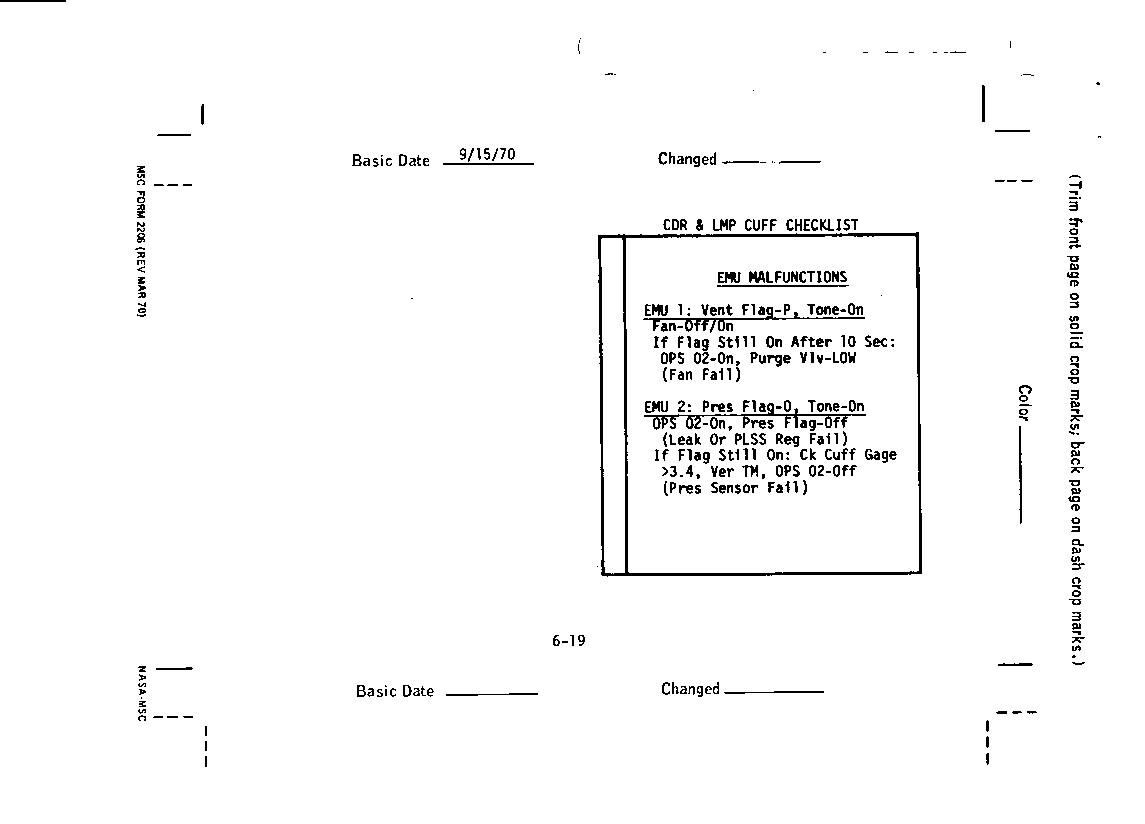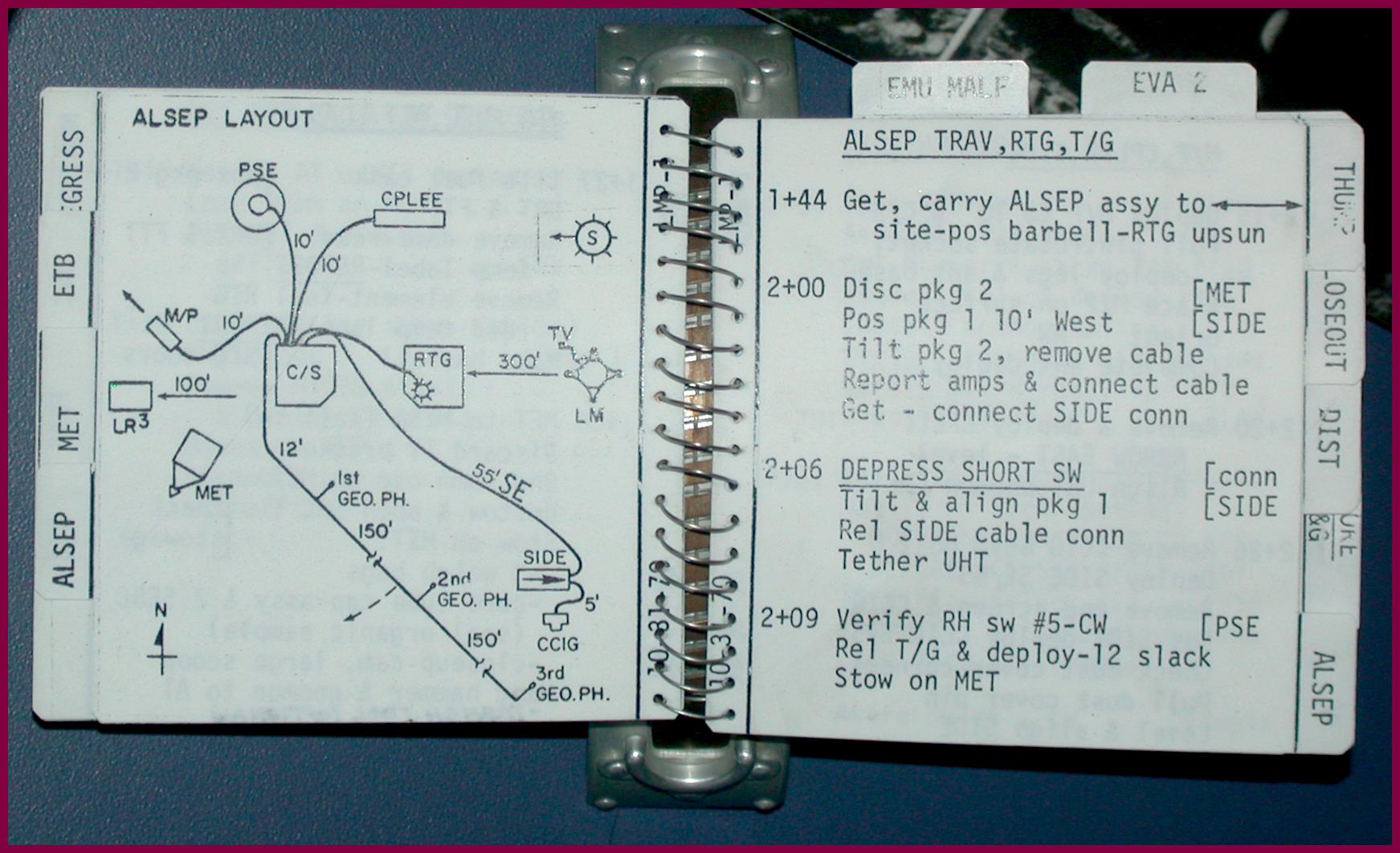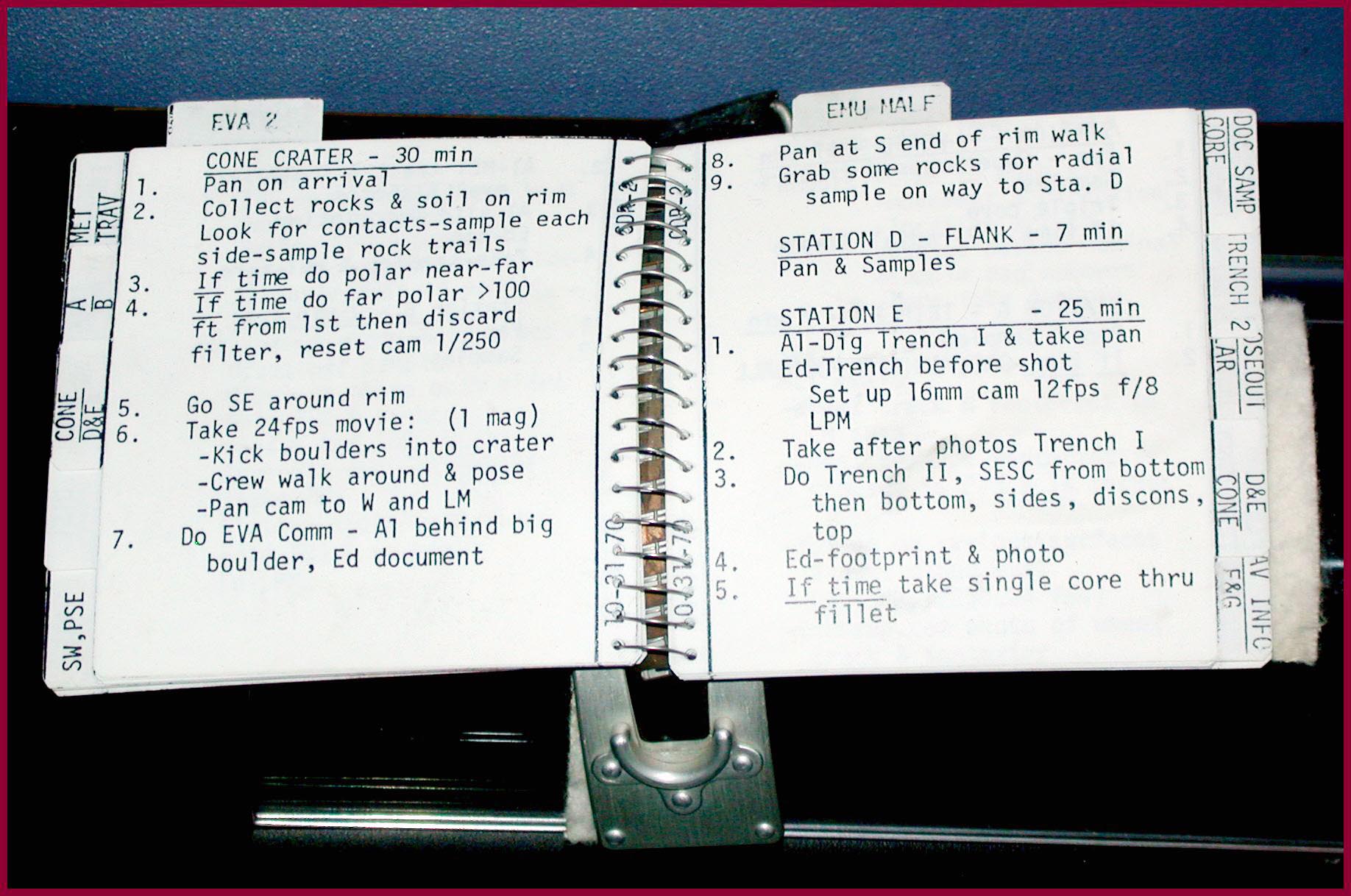 Photographs of flown checklist pages displayed at the Astronaut Hall of Fame, Titusville, Florida, courtesy Ulrich Lotzmann.