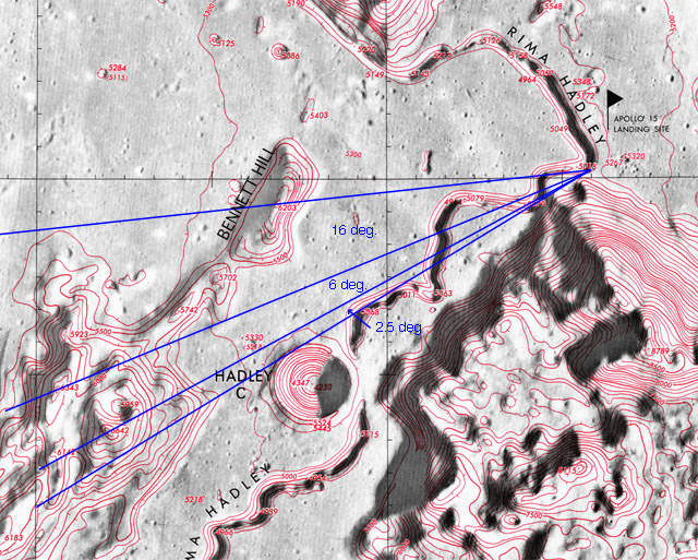 [Scott - "No. Hadley C had good, high resolution stuff, but we had the 20-meter stuff. As we've discussed previously, one reason we didn't know where we were was (the fact that) the maps weren't good enough. They didn't have anything to work with; 20-meter resolution isn't very good. You can't identify many craters that way. So I doubt that there was much good understanding of the relief."]