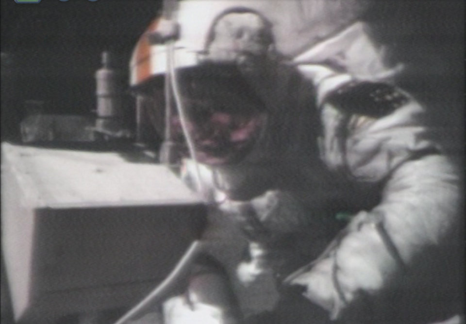 [The EVA has started.]142:14:45 Scott: Okay. "Verify tone on and H2O flag at about 1.2 to 1.7." (Pause) Okay, 2.5; 2.0. Easy does it! (Pause) 1.5. (Long Pause) 0.5. (Pause) And what's your cuff gauge? (Pause)