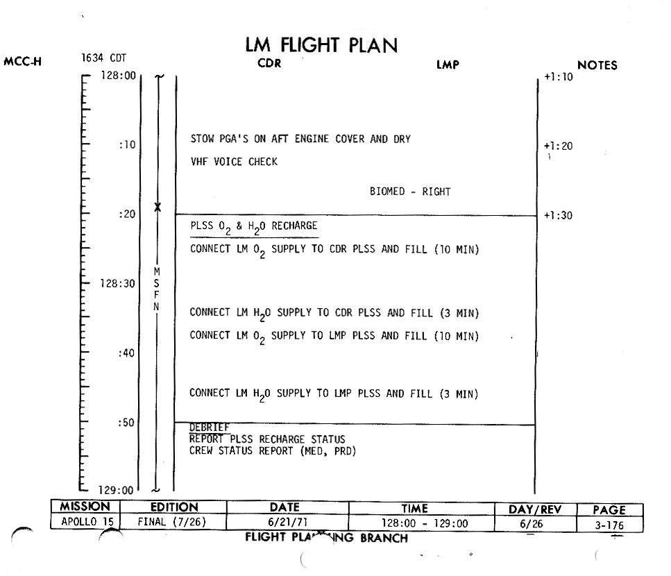 Page 3-176, 128:00-129:00, PLSS recharging, debriefing (71k; jpg)