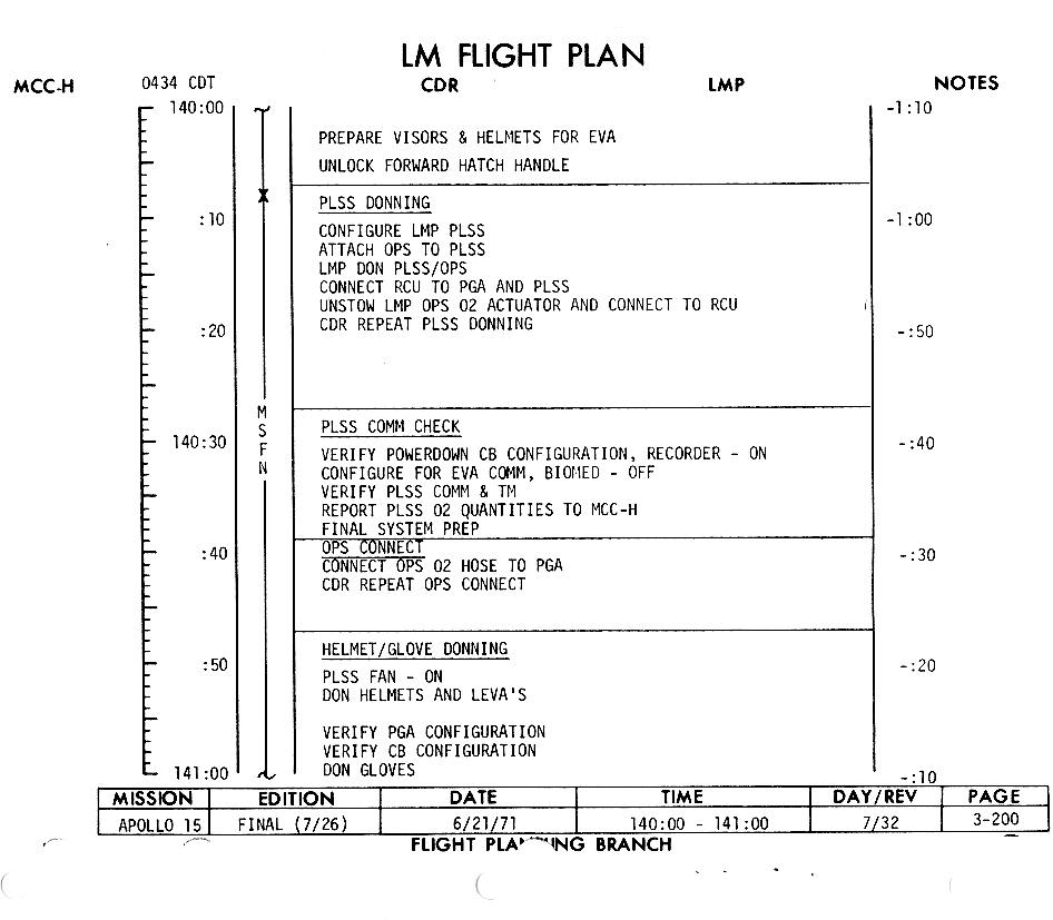 Page 3-200, 140:00-141:00, PLSS donning/checkout, don helmet/gloves (96k; jpg)