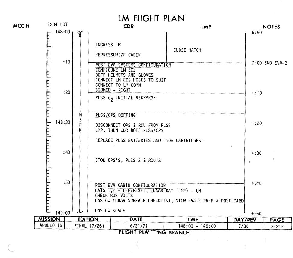 Page 3-216, 148:00-149:00, Ingress, repressurization, PLSS doffing, post-EVA activities (86k; jpg)