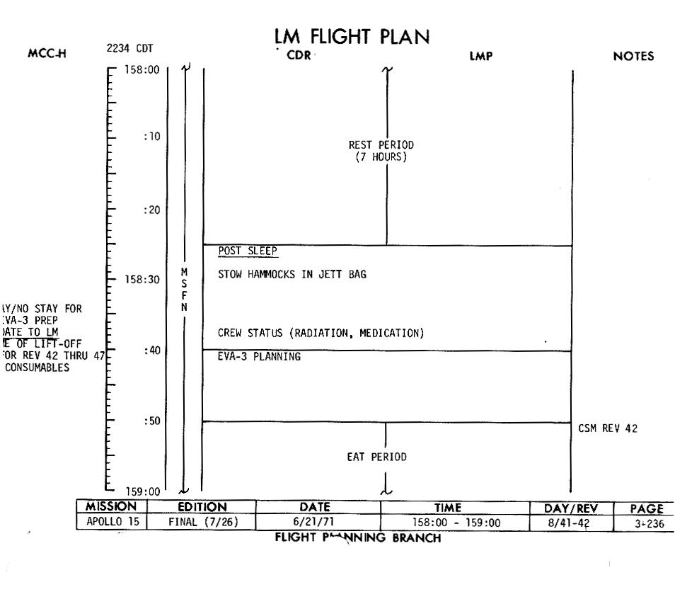 Page 3-236, 158:00-159:00, Post sleep, EVA-3 planning, eat period (60k; jpg)