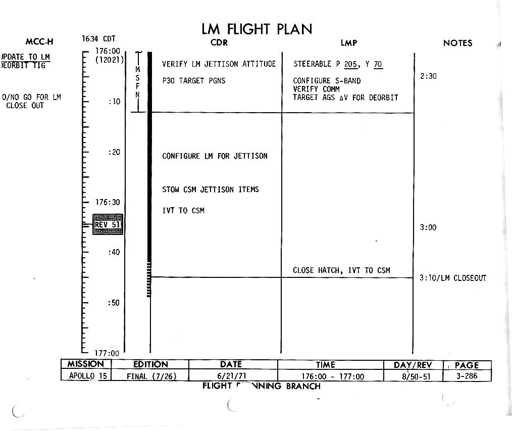 Page 3-286, 176:00-177:00, Configure LM for jettison, close hatch (75k; jpg)