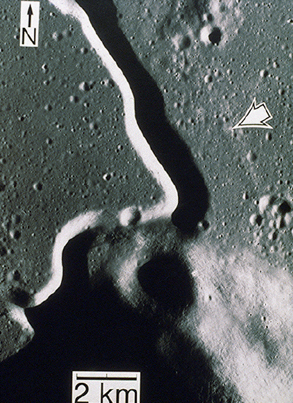 And, as I look up to Hadley Delta, itself, I can see what appears to be a sweep of linear features that curve around from the western side of Hadley Delta on down to the (Silver) Spur down there. And they seem to be dipping to the to the east at about 20 degrees. These are much thinner lineations on the mountain than I saw before. These probably are less than one percent of the total elevation of the mountain. The craters on the side of Hadley Delta are rather few. Around Window (Crater) and Spur (Crater), those that you see on your maps are the only ones I can see, and there appear to be, oh, about a dozen up in that particular area. I might associate those with the Secondary Cluster (also known as the South Cluster, a group of craters possibly created by the impact of ejecta from the craters Aristillus and/or Autolycus which are 150 to 300 km north of Hadley), if I took a guess at it. I see nothing that indicates any flow down - or a landslide - down Hadley Delta, only some subtle changes in topography. There's one bright, fresh crater right next to St. George on the eastern side which is almost white in albedo; and it's got an ejecta blanket about a crater diameter away. How are you copying so far?