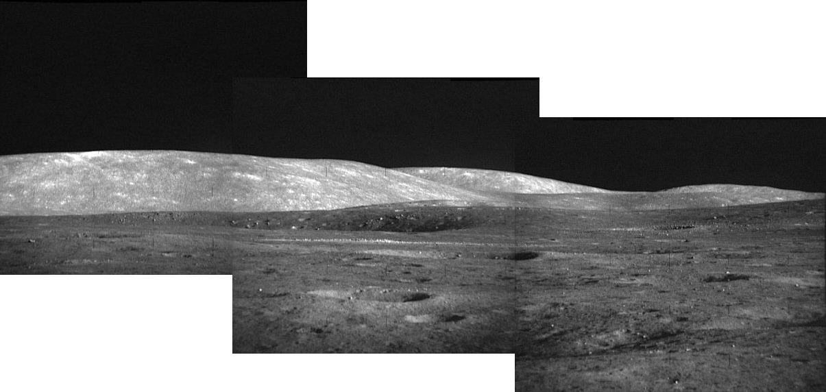 As I come around to my 2 o'clock, the horizon is really the Northern Complex. I can see, as I mentioned before, Chain, Icarus, and Pluton are very rounded, subdued craters. It looks like the southern rim of Pluton is on the same level as our location here. The northern rim is somewhat higher. I'd say - distances are difficult - but maybe 50 meters higher. I can see the scarp on the other side of the north rim of Pluton. All of it very flat, smooth, and gently rolling.