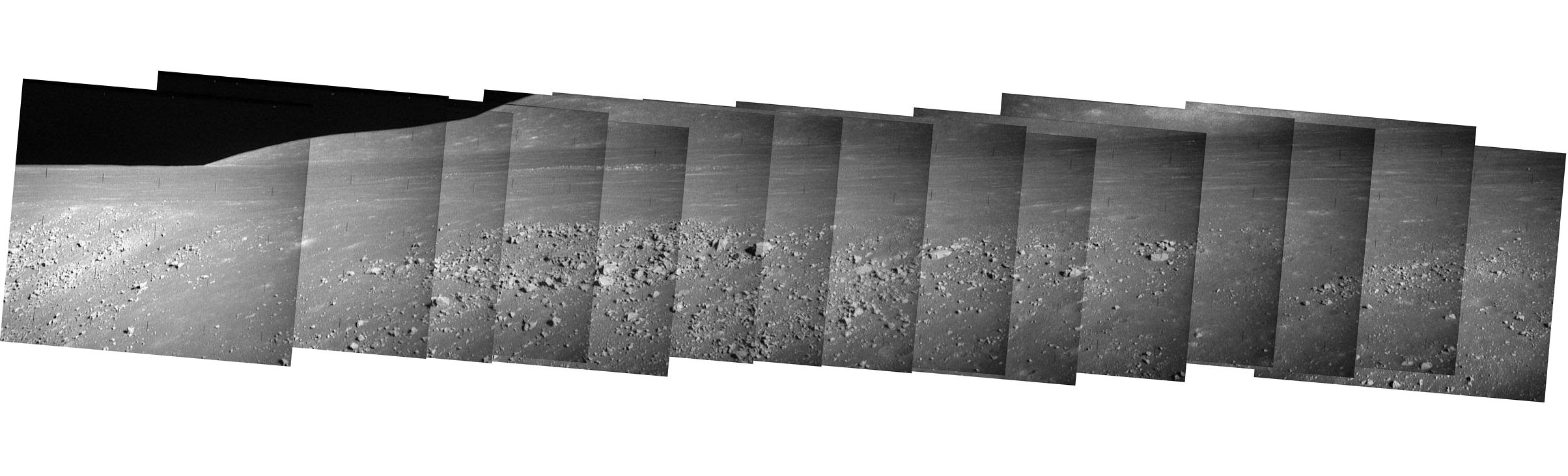 [Dave Byrne has combined both horizontal strips and ther vertical strip in a single portrait of the rille wall opposite Station 2.