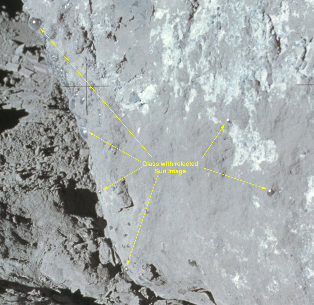 [Scott, from the 1971 Technical Debrief - "The 500-mm worked fine. I used my helmet shield (that is, the visor) as a base to steady it. I noticed it made some light scratches in the gold (electroplated) material, but it really didn't bother it."]
