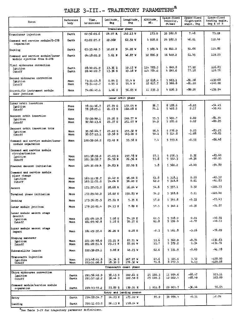 TABLE 3-III.- TRAJECTORY PARAMETERS