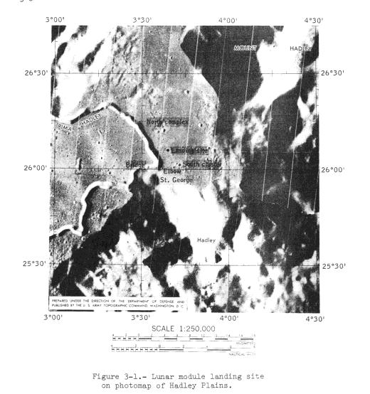 desired lunar location of 3 degrees 39 minutes south latitude and 7 degrees
