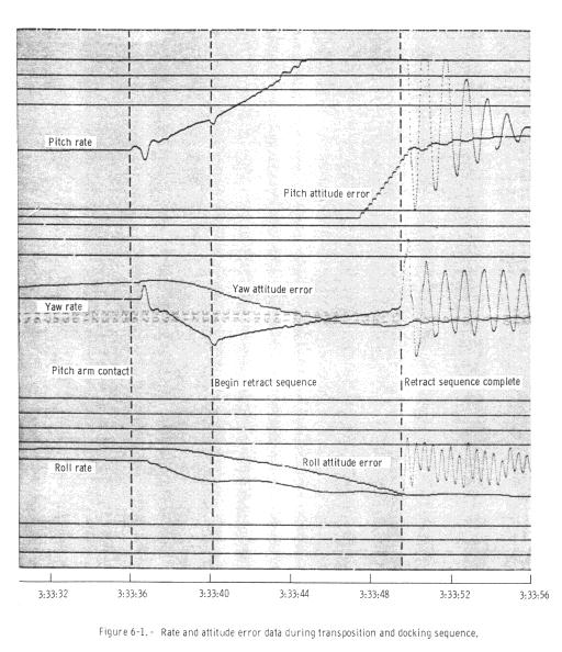 Figure 6-1. -Rate and attitude error data during transposition and docking sequence.