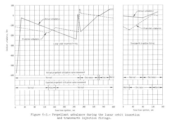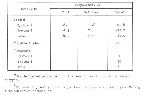 Service Module.- The propellant utilization and loading data for the
