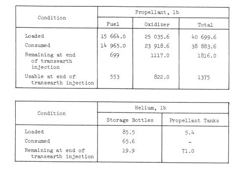 Service propulsion propellant and helium loadings and consumption
