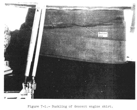 skirt. The descent engine skirt buckled during landing. This is accounted