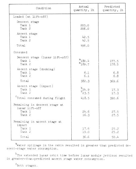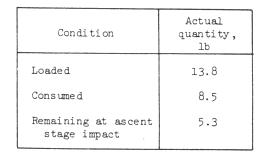 Propellant.- The ascent propulsion system total propellant usage was