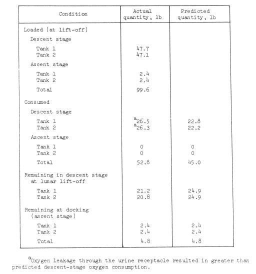 loss of about 8 pounds of descent stage oxygen before the crew was awakened