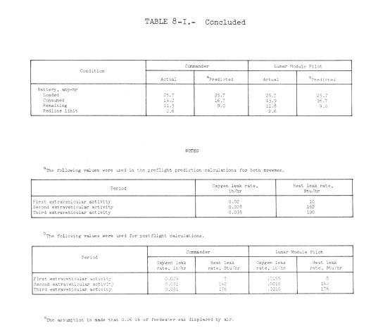 For the Commander's first and second extravehicular activities, and the Lunar Module