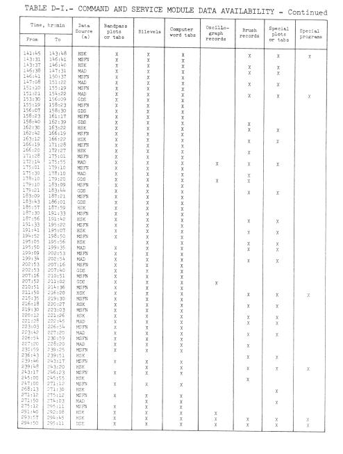 systems performance analyses and anomaly investigations. Table D-I lists the