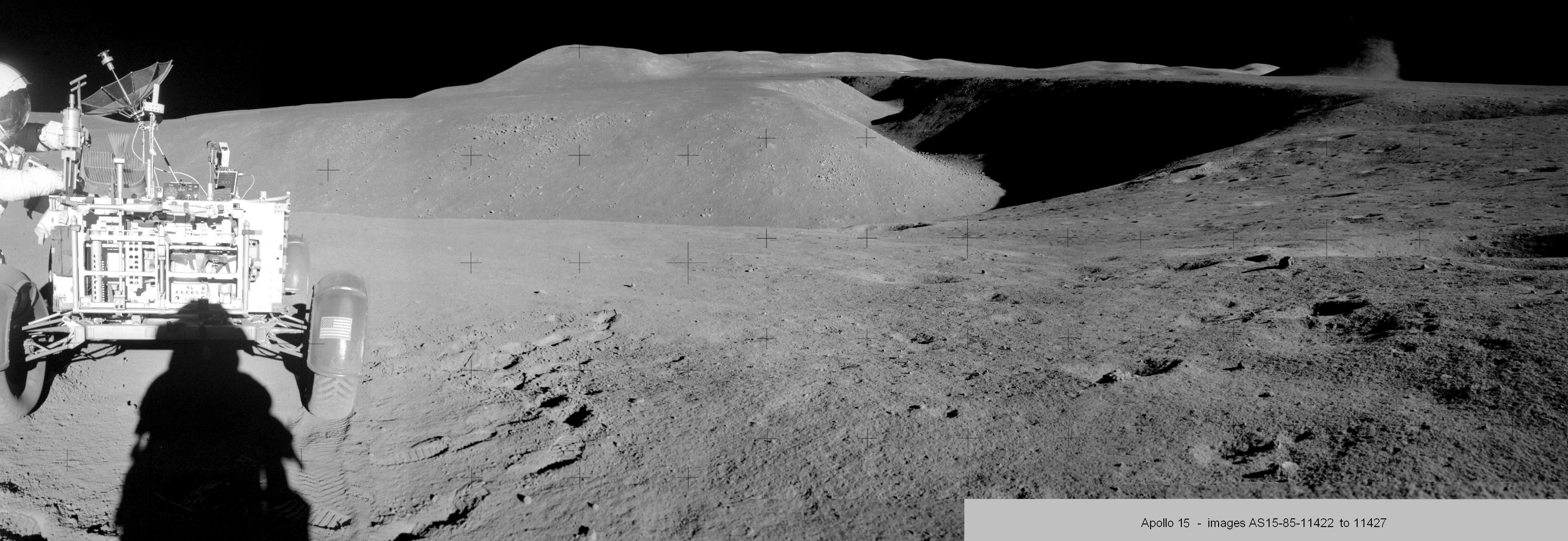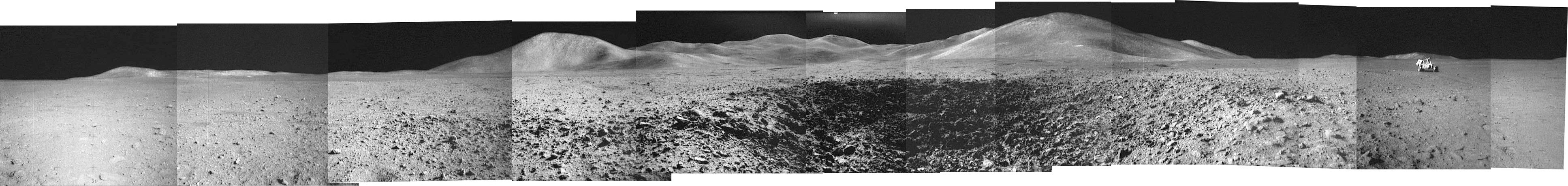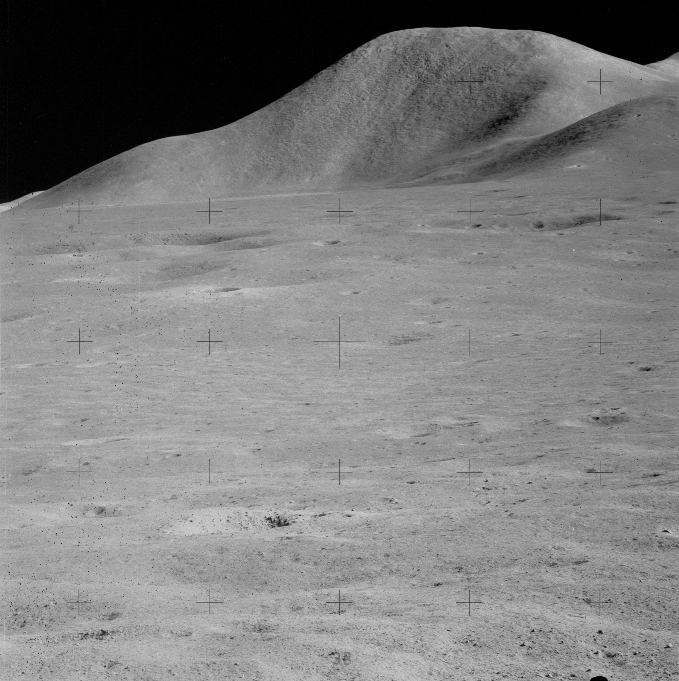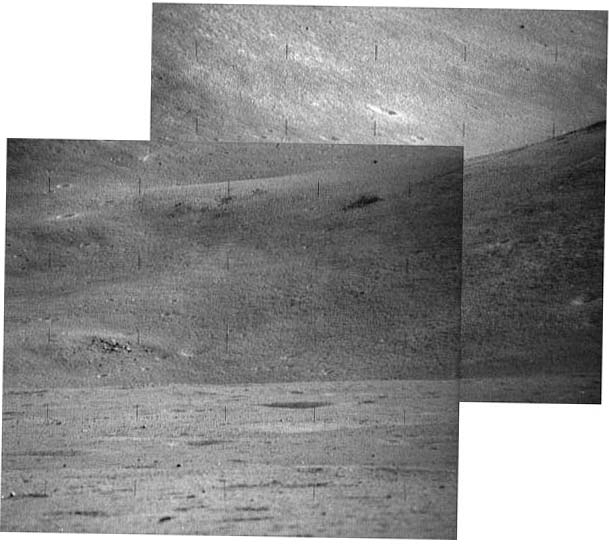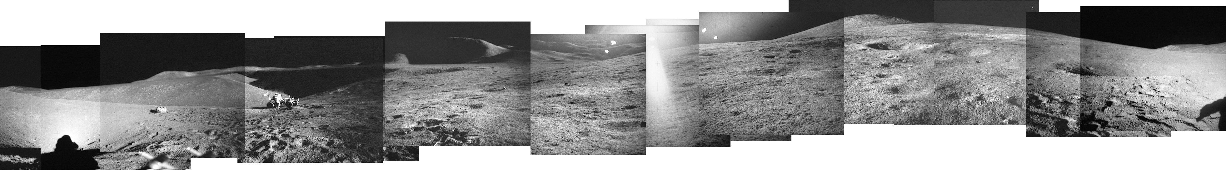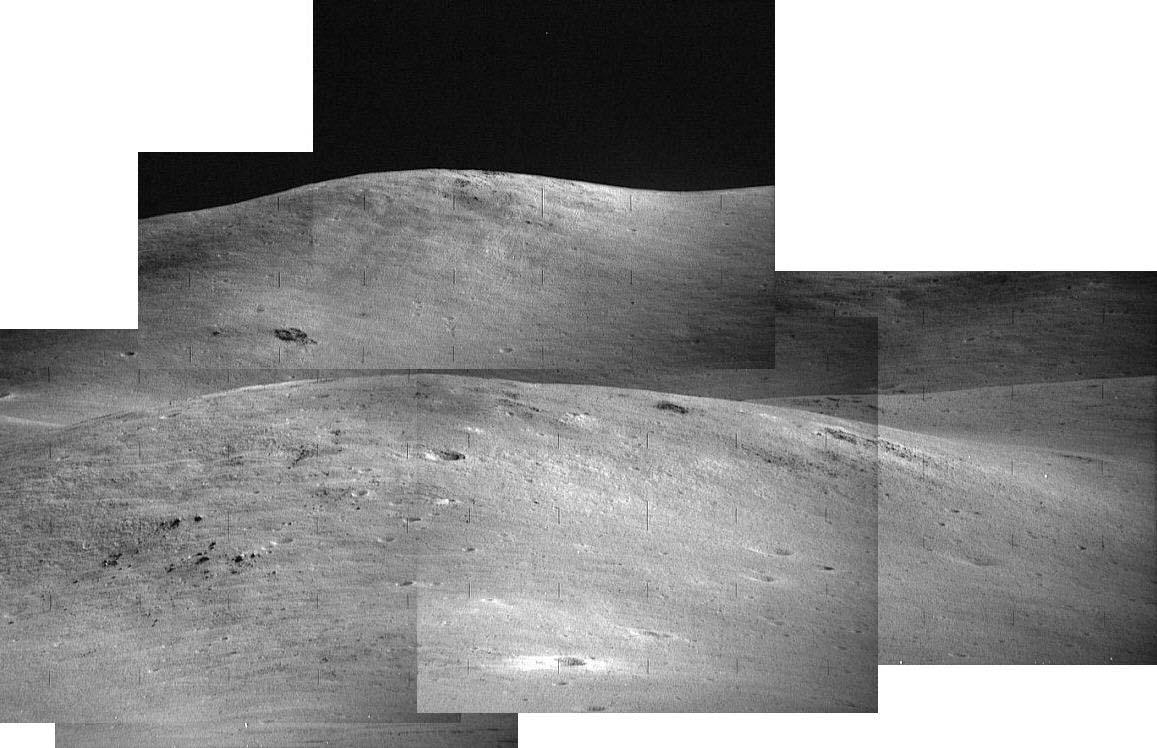The frames are AS15-85- 11353 to 11382. Assembled by Dave Byrne.106:56:54 SEVA 500-mm Pan of Hill 305 ( 52k )Full resolution assemblies of the northern portion ( 1.5 Mb ), eastern portion ( 3.1 Mb ), and southern portion ( 2.5 Mb ) by Eric Jones.