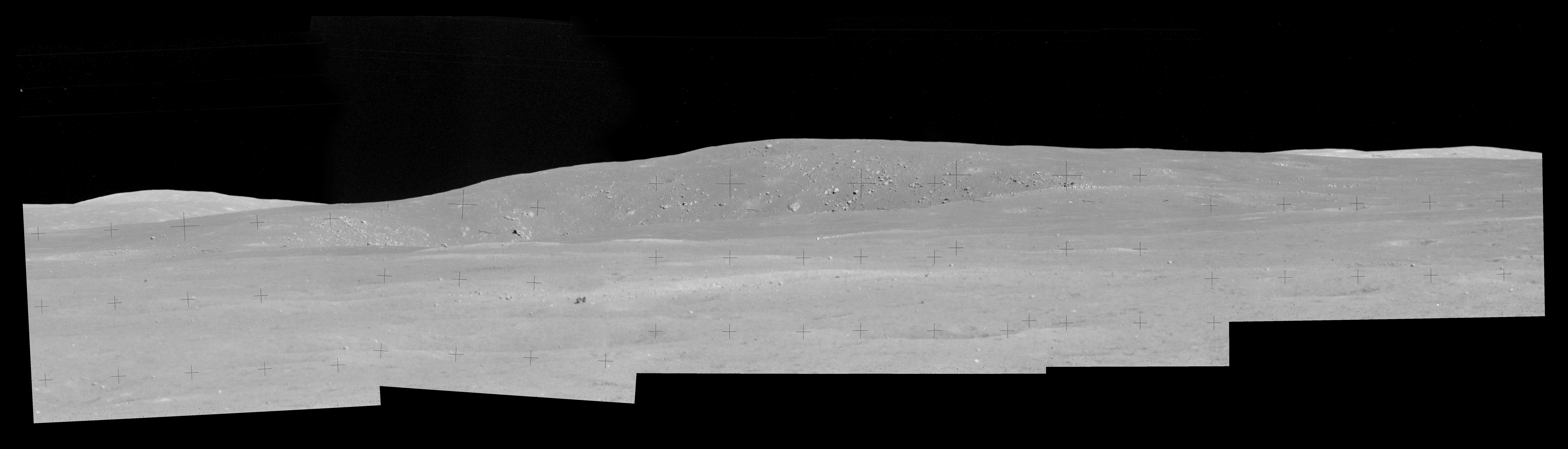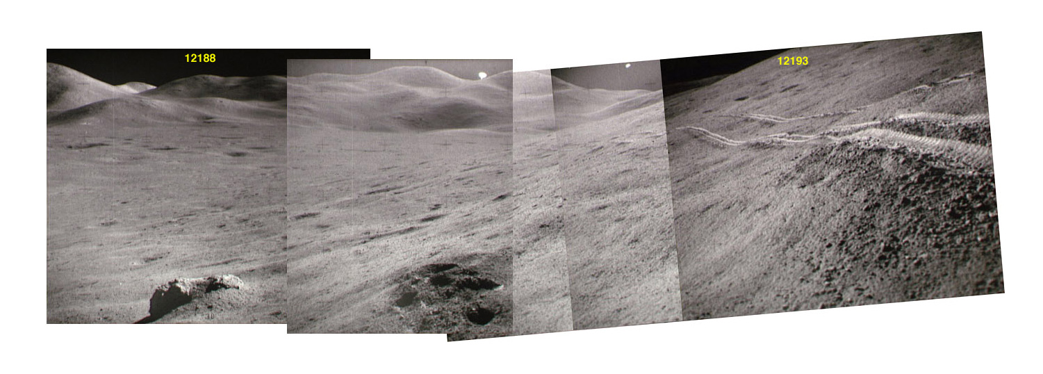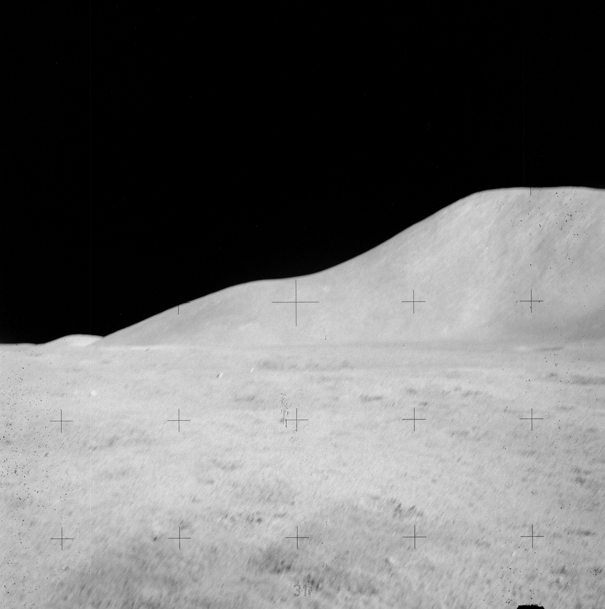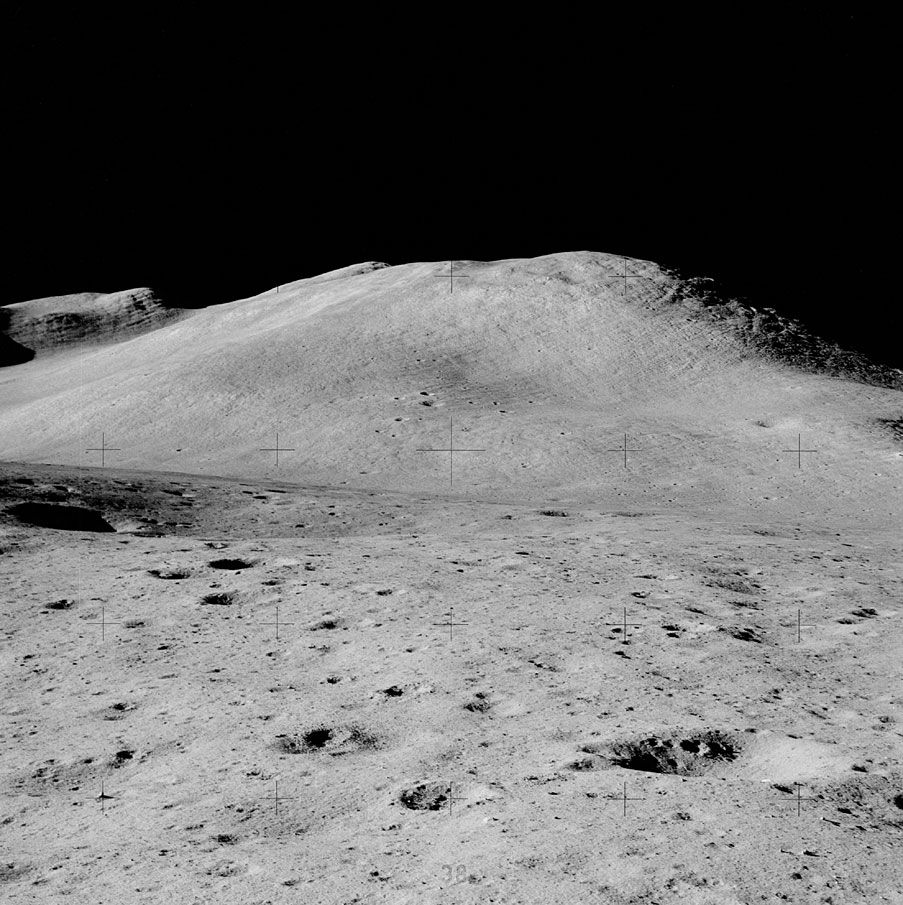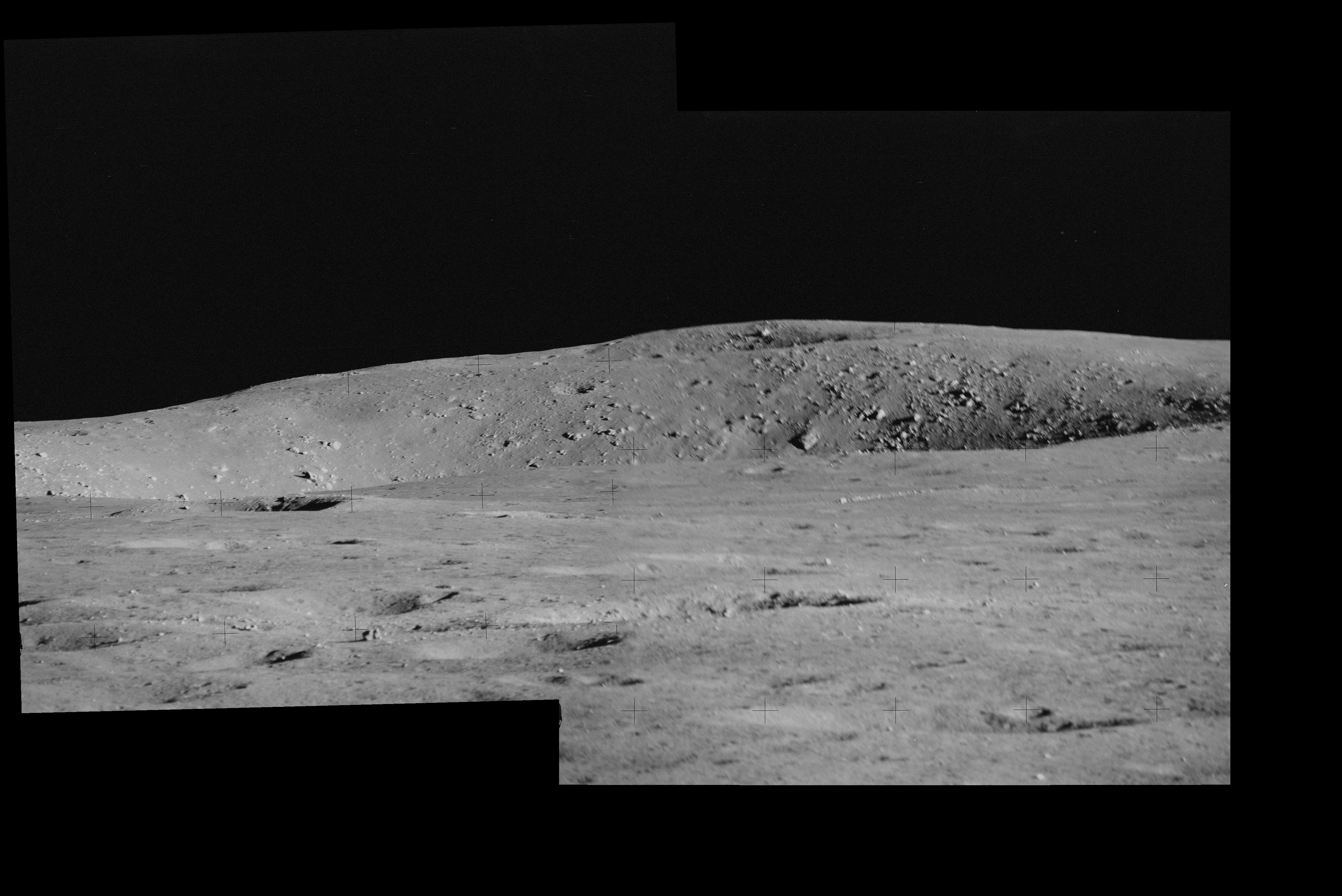The frames are AS15-85- 11353 to 11382. Assembled by Dave Byrne.106:56:54 SEVA 500-mm Pan of Hill 305 ( 52k )Full resolution assemblies of the northern portion ( 1.5 Mb ), eastern portion ( 3.1 Mb ), and southern portion ( 2.5 Mb ) by Eric Jones.
