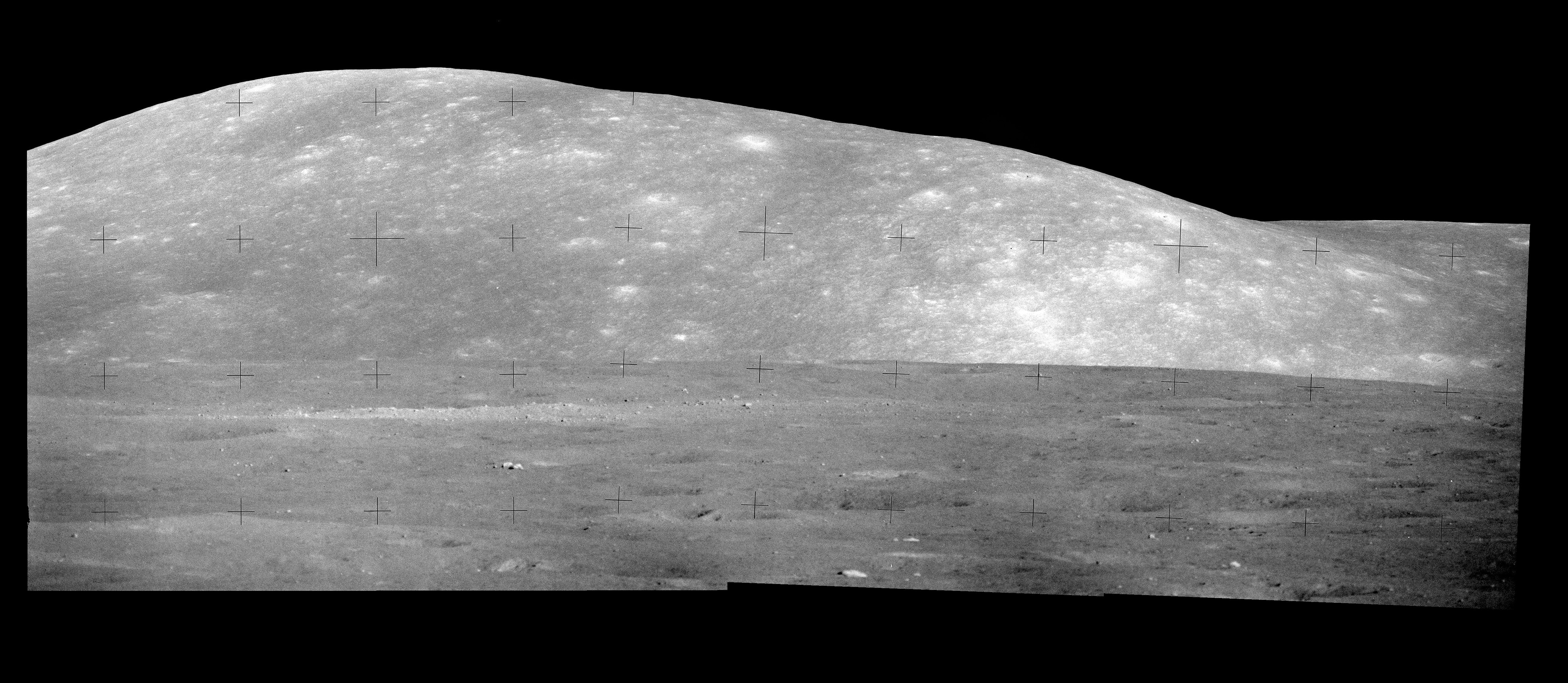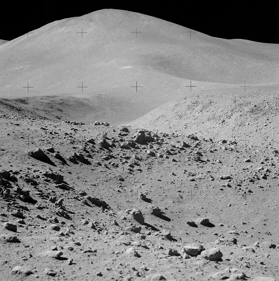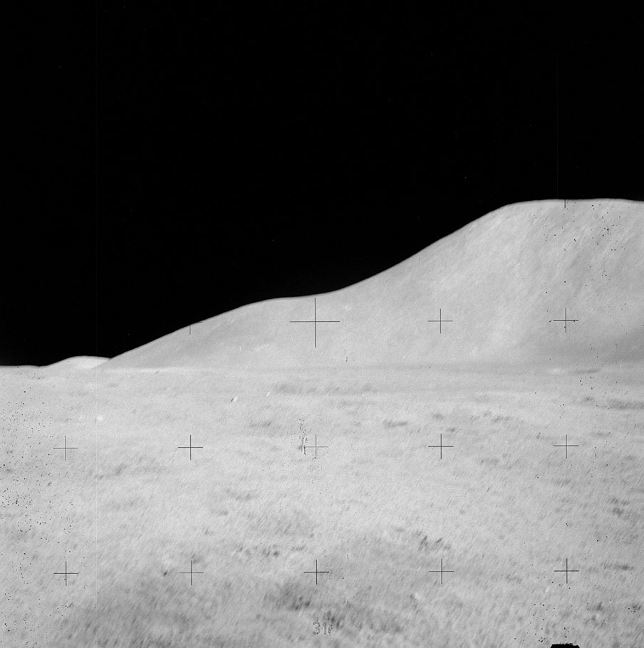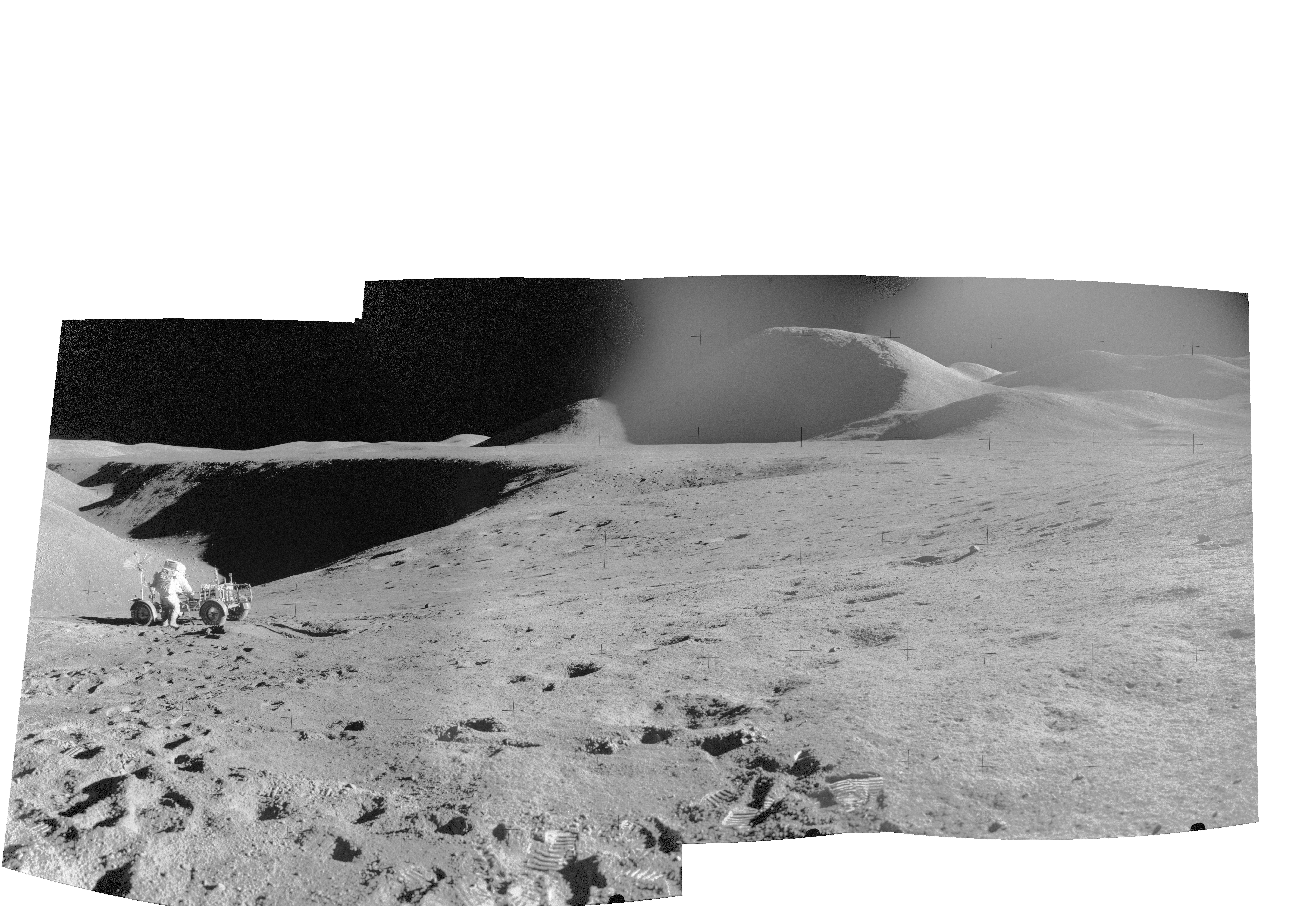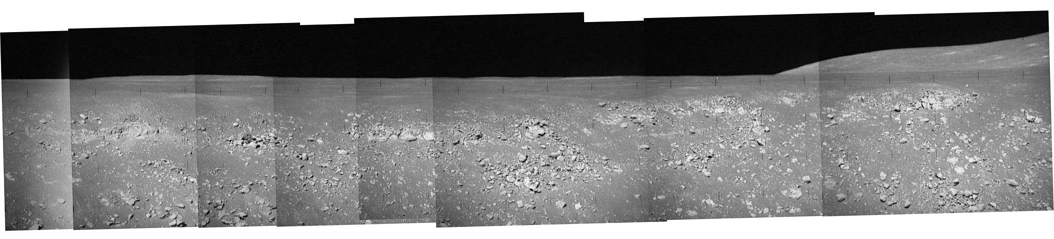 The frames are AS15-85- 11353 to 11382. Assembled by Dave Byrne.106:56:54 SEVA 500-mm Pan of Hill 305 ( 52k )Full resolution assemblies of the northern portion ( 1.5 Mb ), eastern portion ( 3.1 Mb ), and southern portion ( 2.5 Mb ) by Eric Jones.