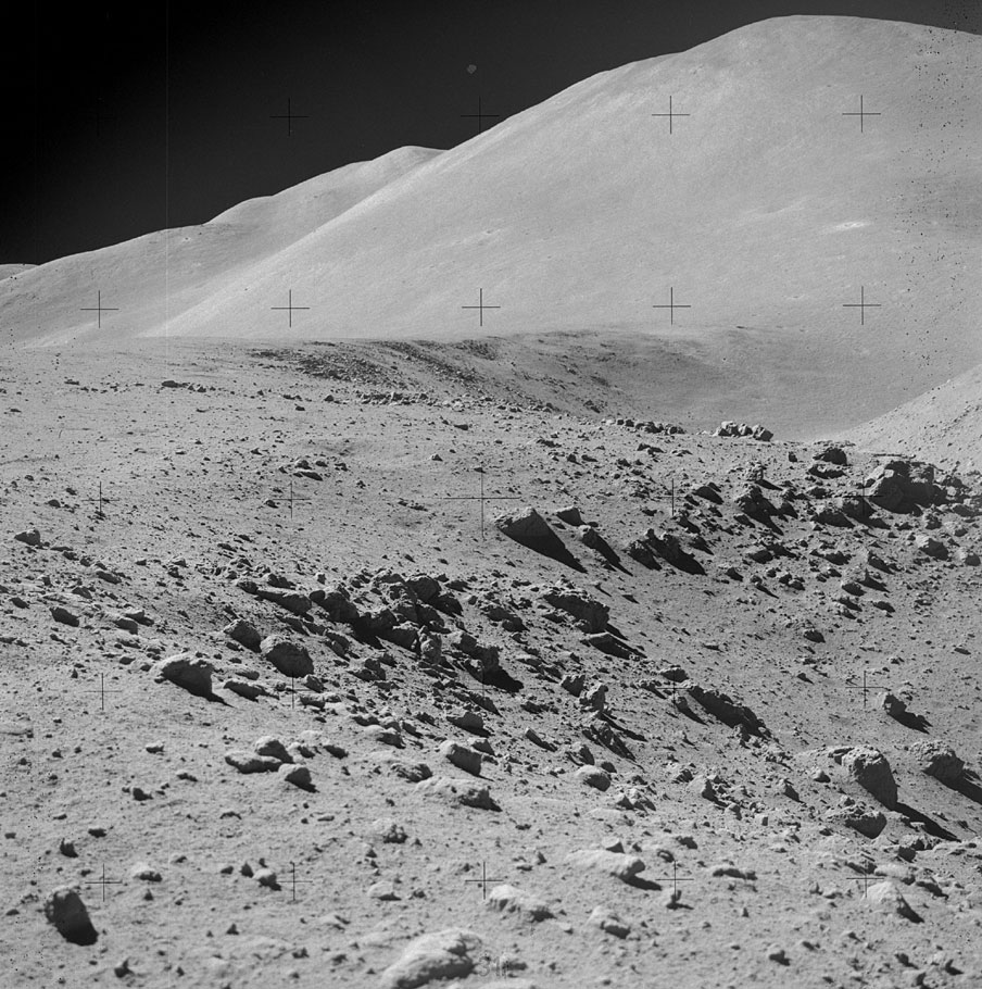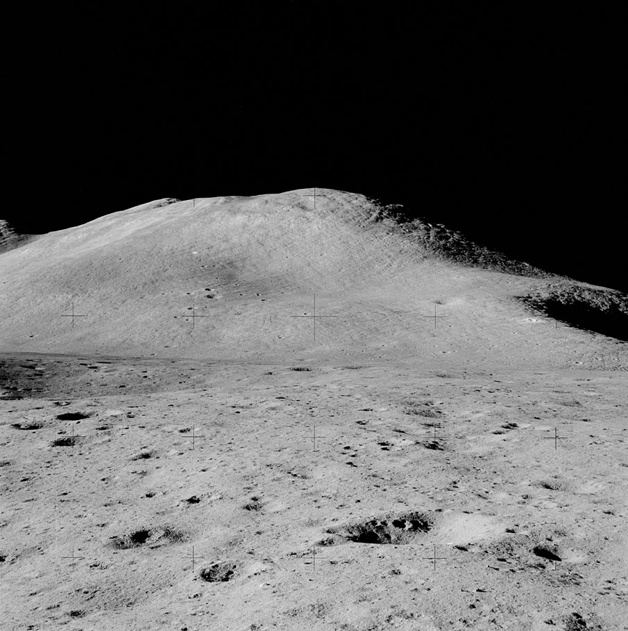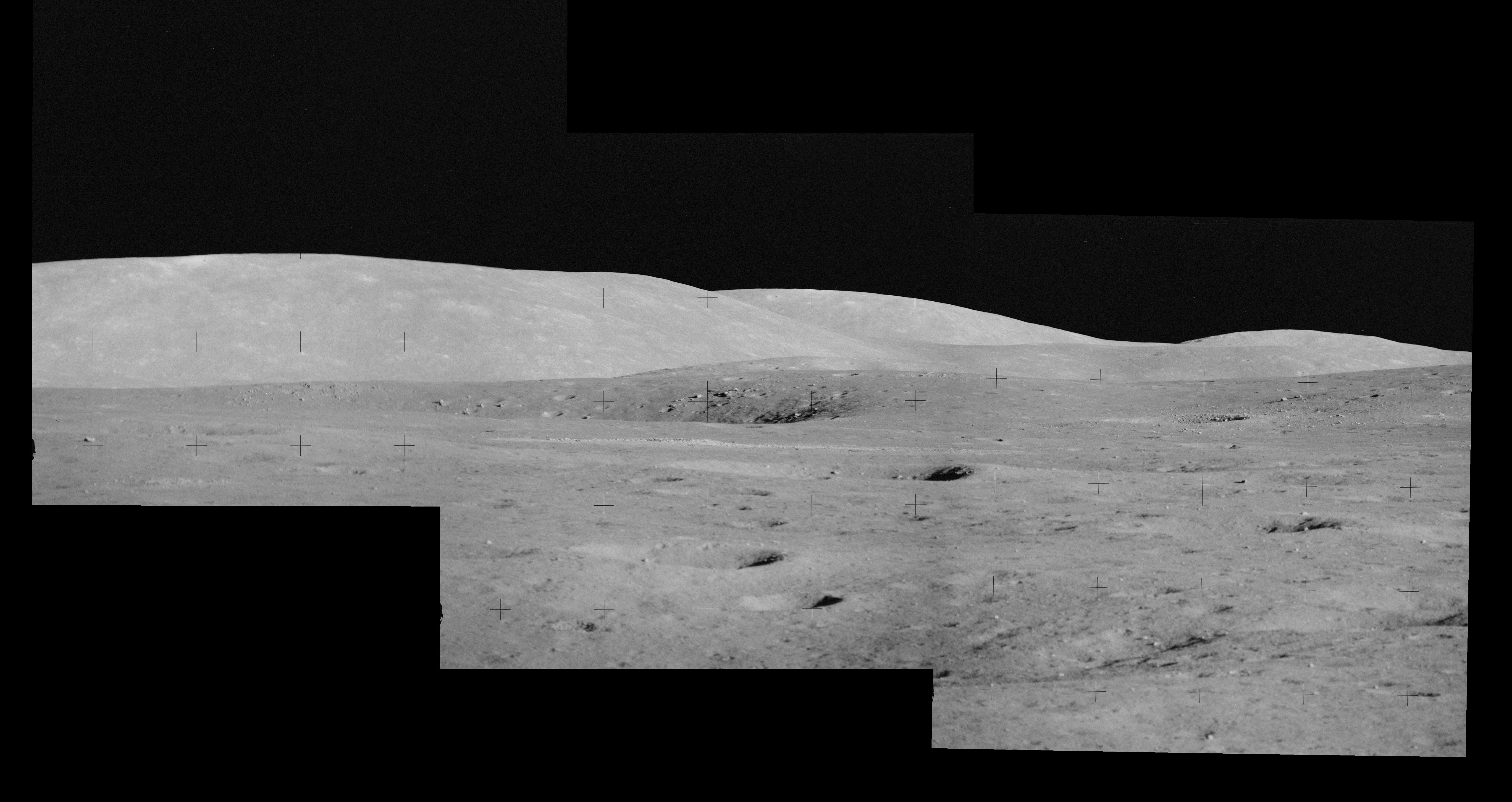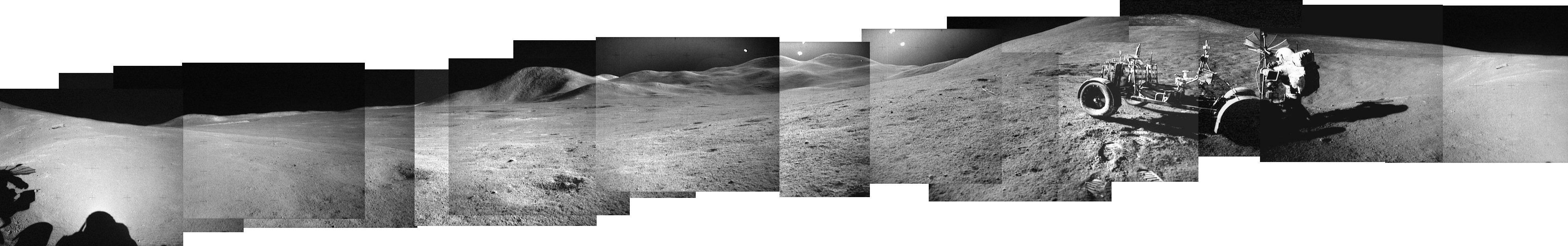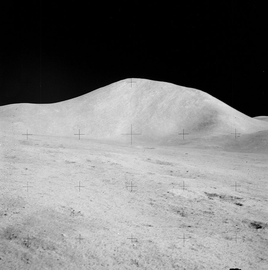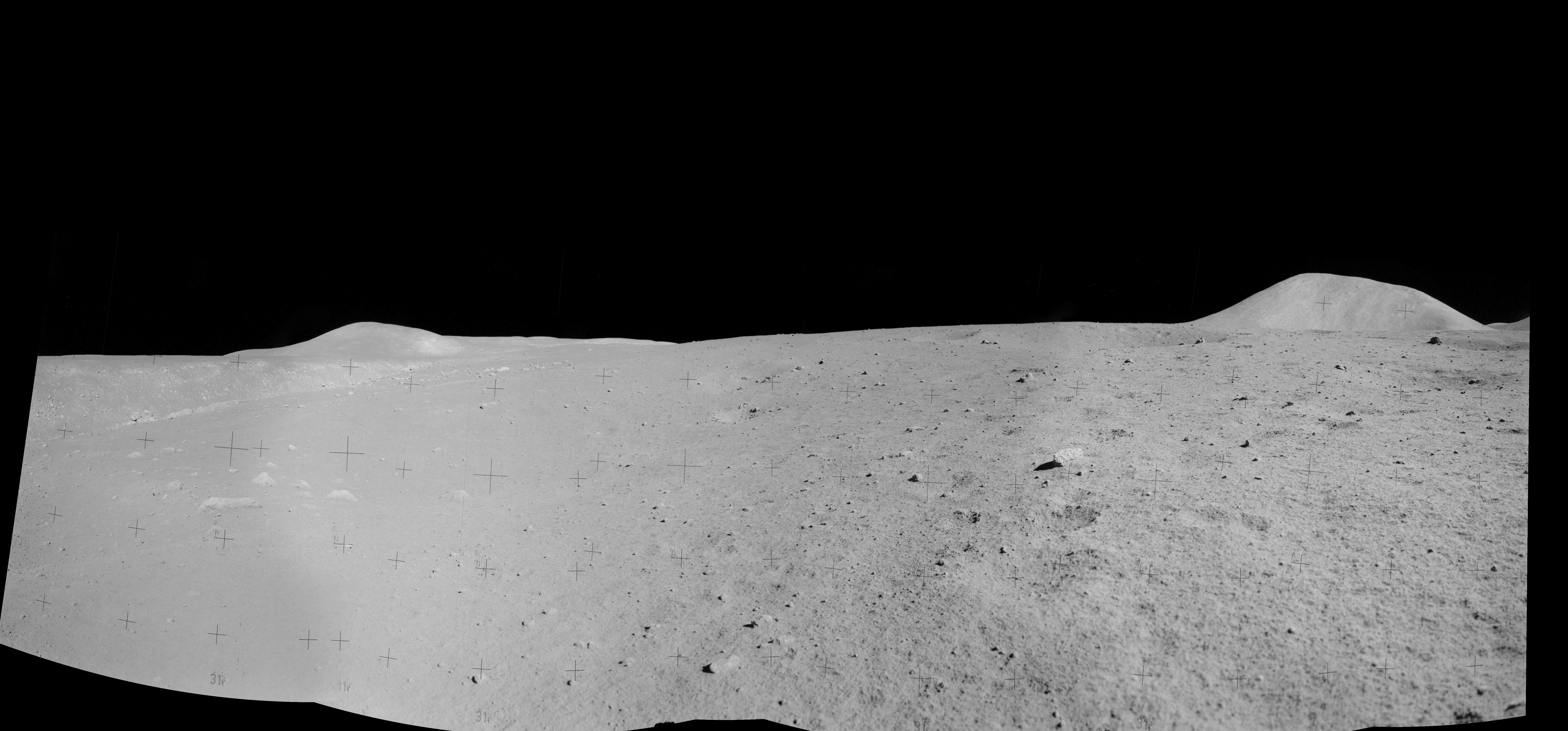 The frames are AS15-85- 11353 to 11382. Assembled by Dave Byrne.106:56:54 SEVA 500-mm Pan of Hill 305 ( 52k )Full resolution assemblies of the northern portion ( 1.5 Mb ), eastern portion ( 3.1 Mb ), and southern portion ( 2.5 Mb ) by Eric Jones.