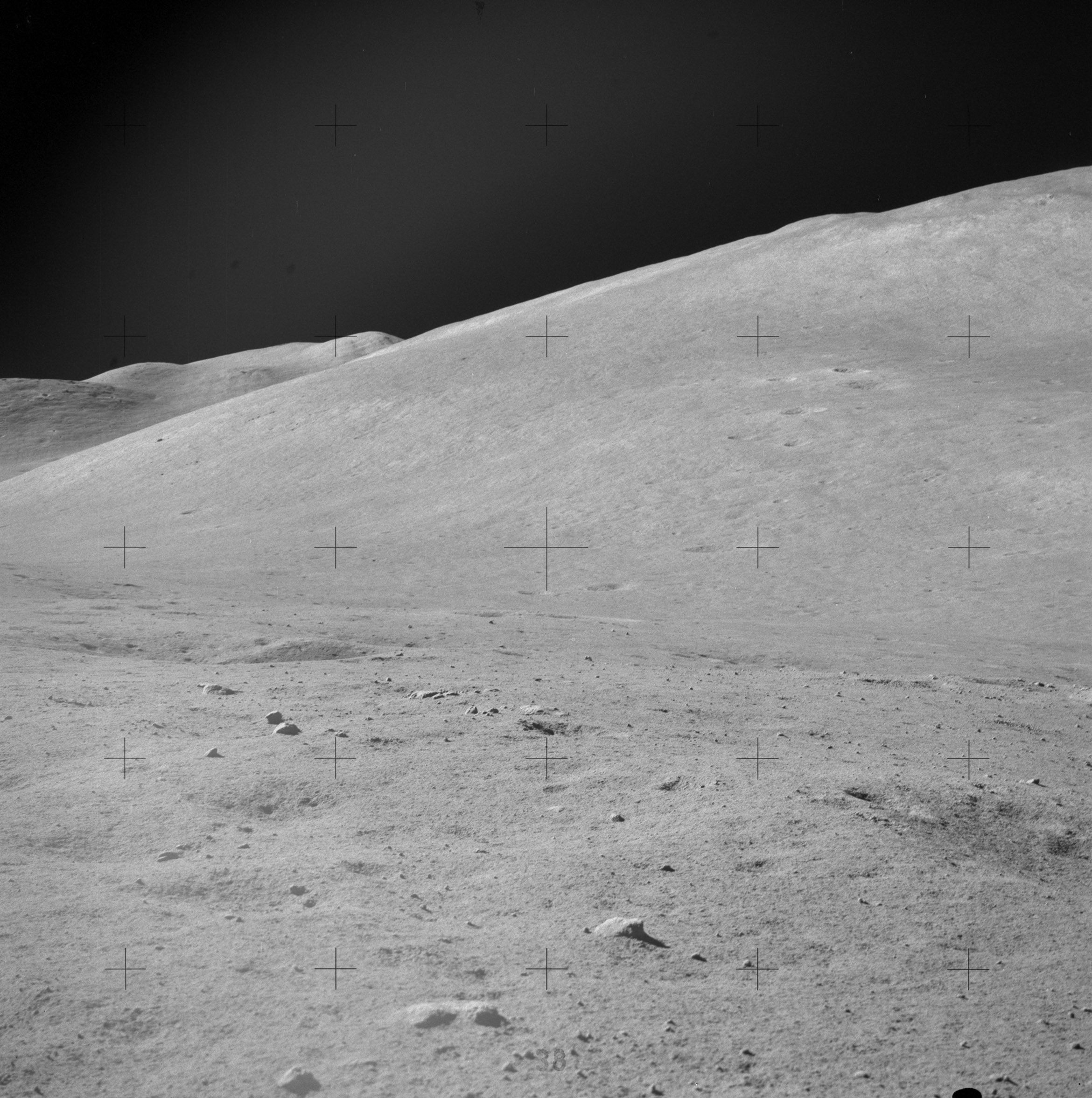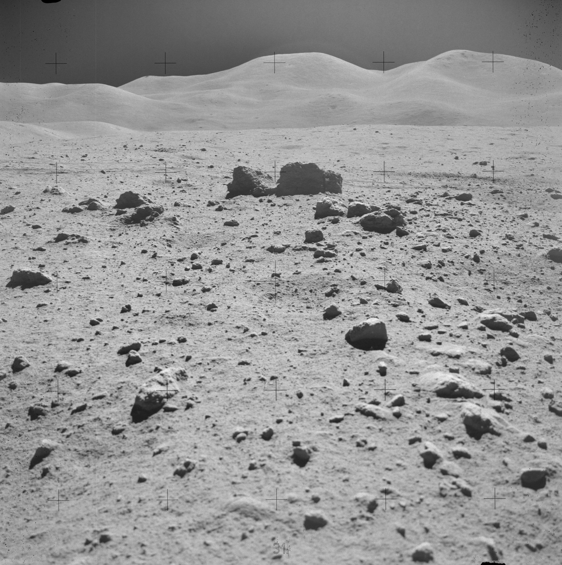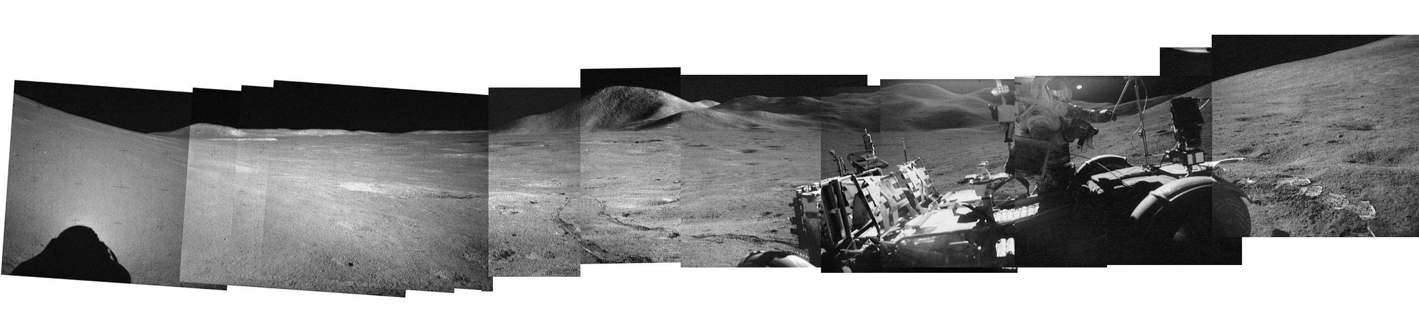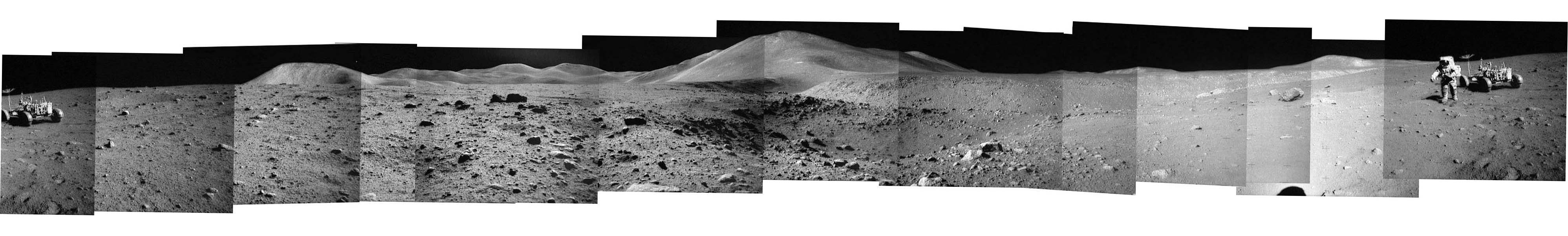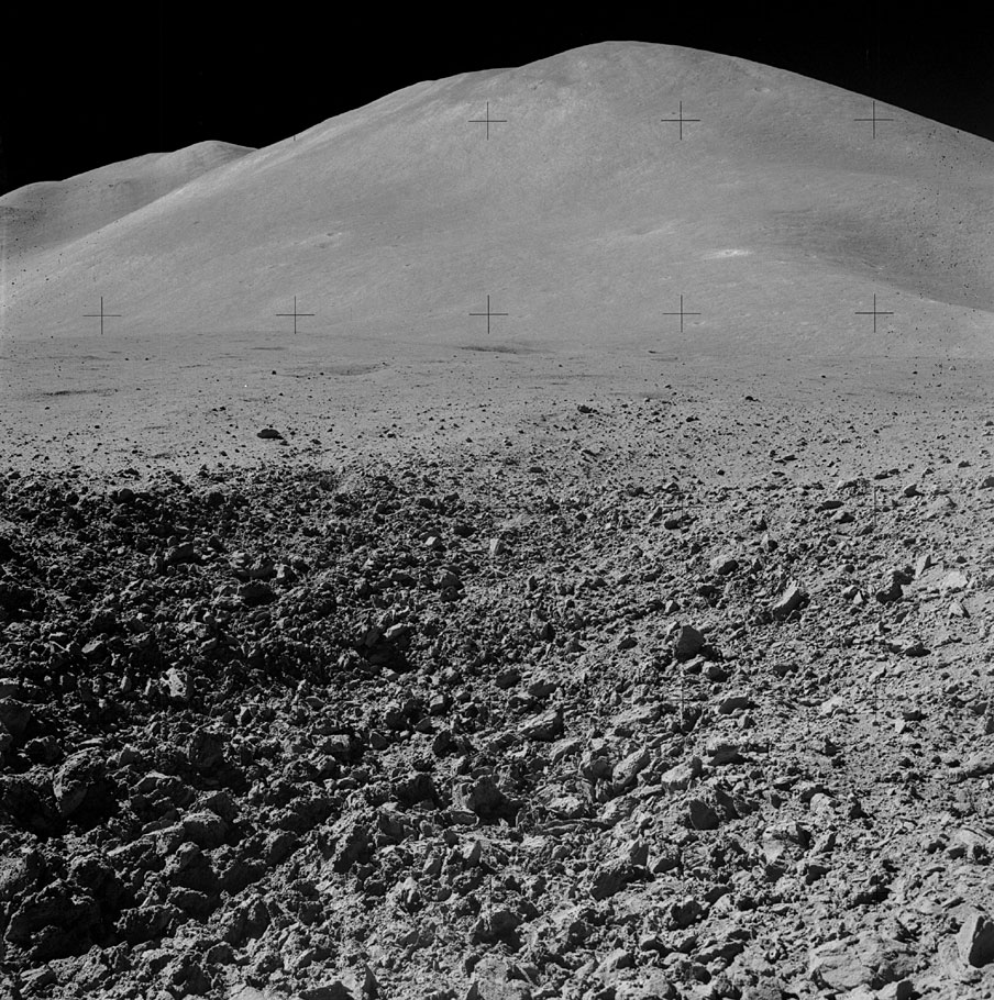 The frames are AS15-85- 11353 to 11382. Assembled by Dave Byrne.106:56:54 SEVA 500-mm Pan of Hill 305 ( 52k )Full resolution assemblies of the northern portion ( 1.5 Mb ), eastern portion ( 3.1 Mb ), and southern portion ( 2.5 Mb ) by Eric Jones.