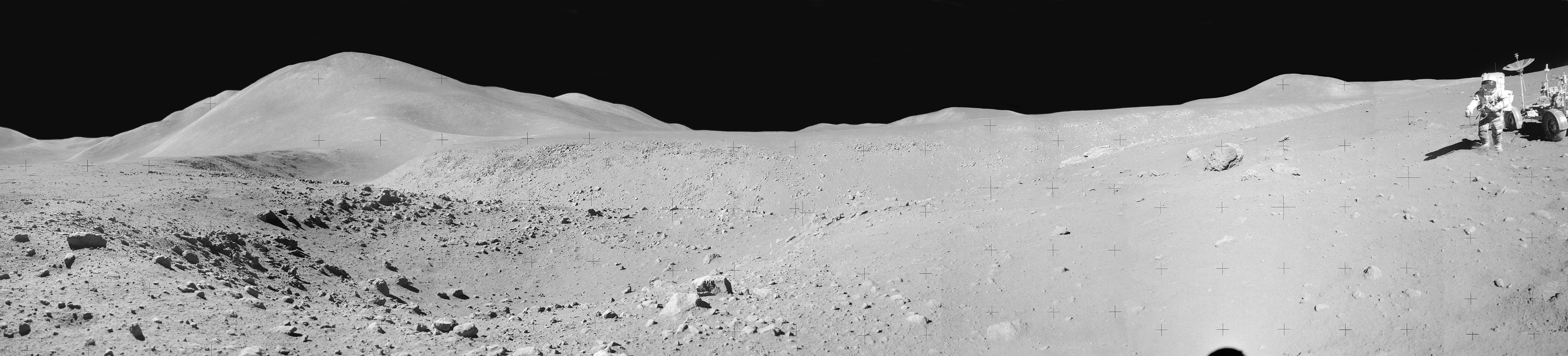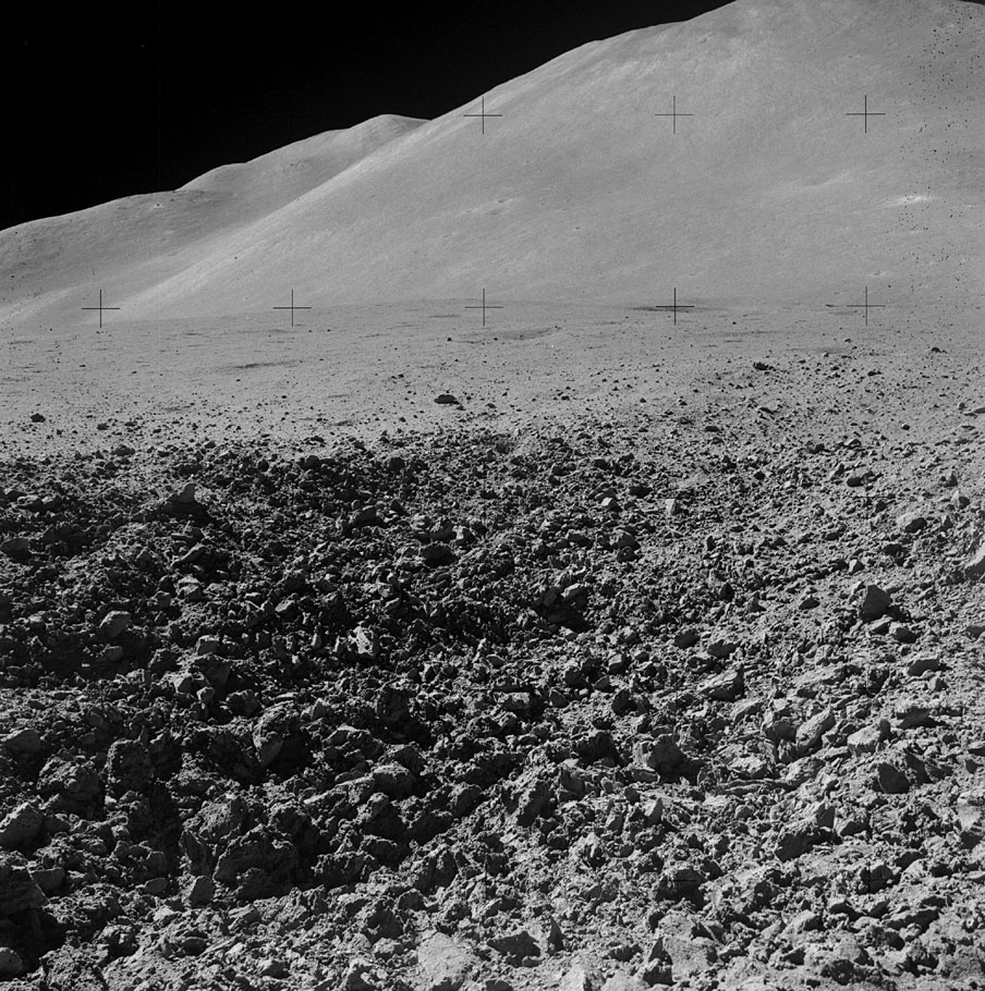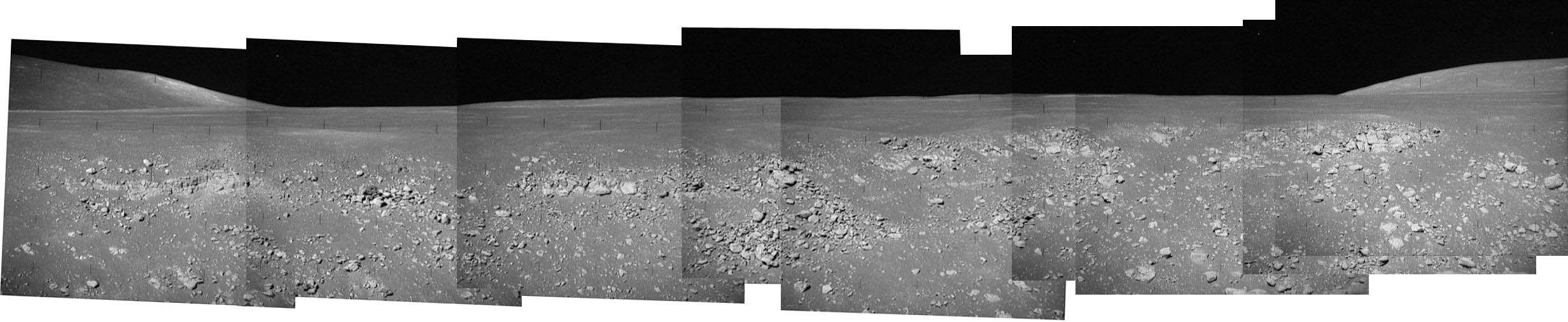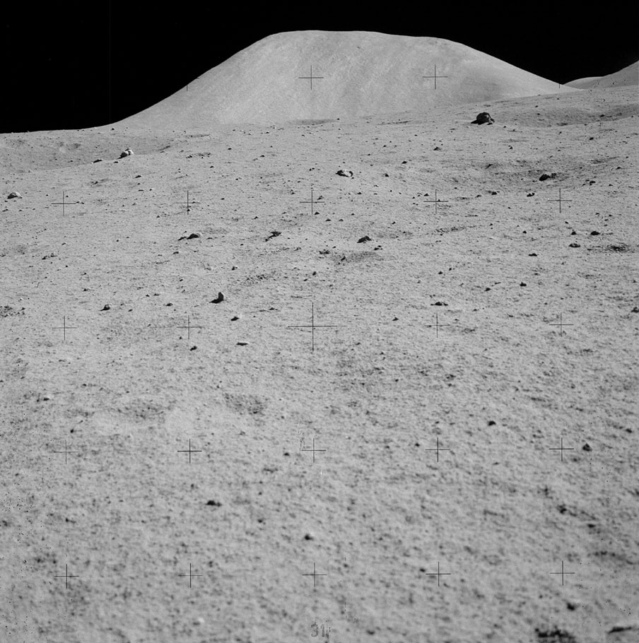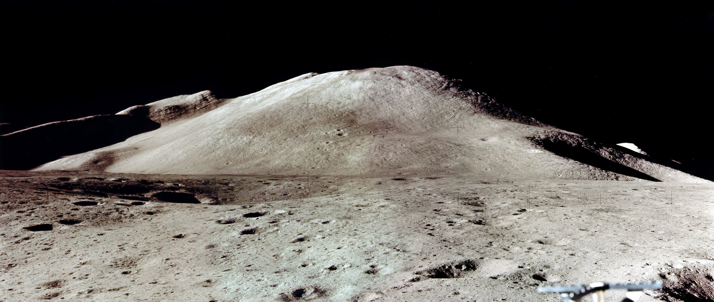 The frames are AS15-85- 11353 to 11382. Assembled by Dave Byrne.106:56:54 SEVA 500-mm Pan of Hill 305 ( 52k )Full resolution assemblies of the northern portion ( 1.5 Mb ), eastern portion ( 3.1 Mb ), and southern portion ( 2.5 Mb ) by Eric Jones.
