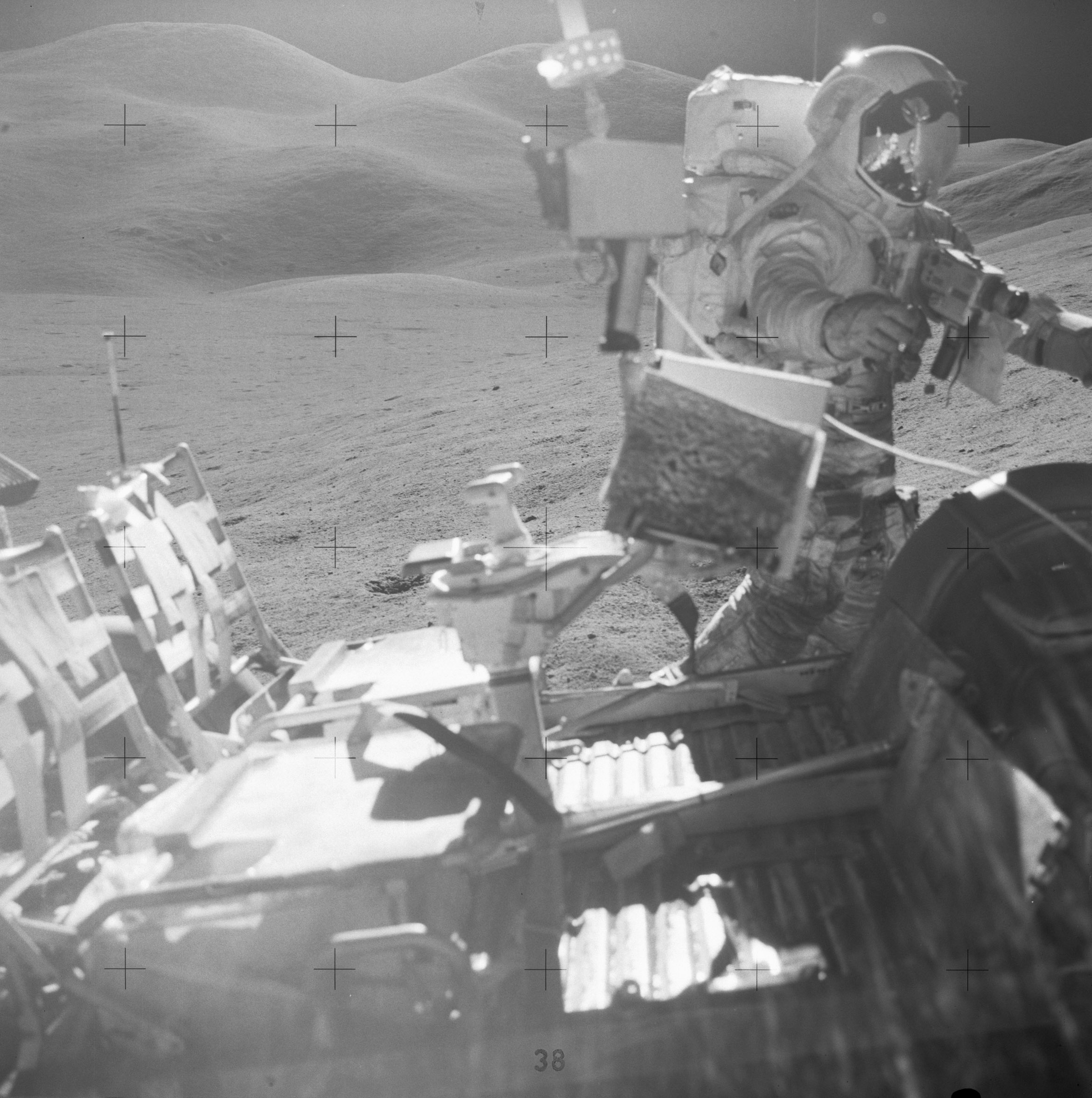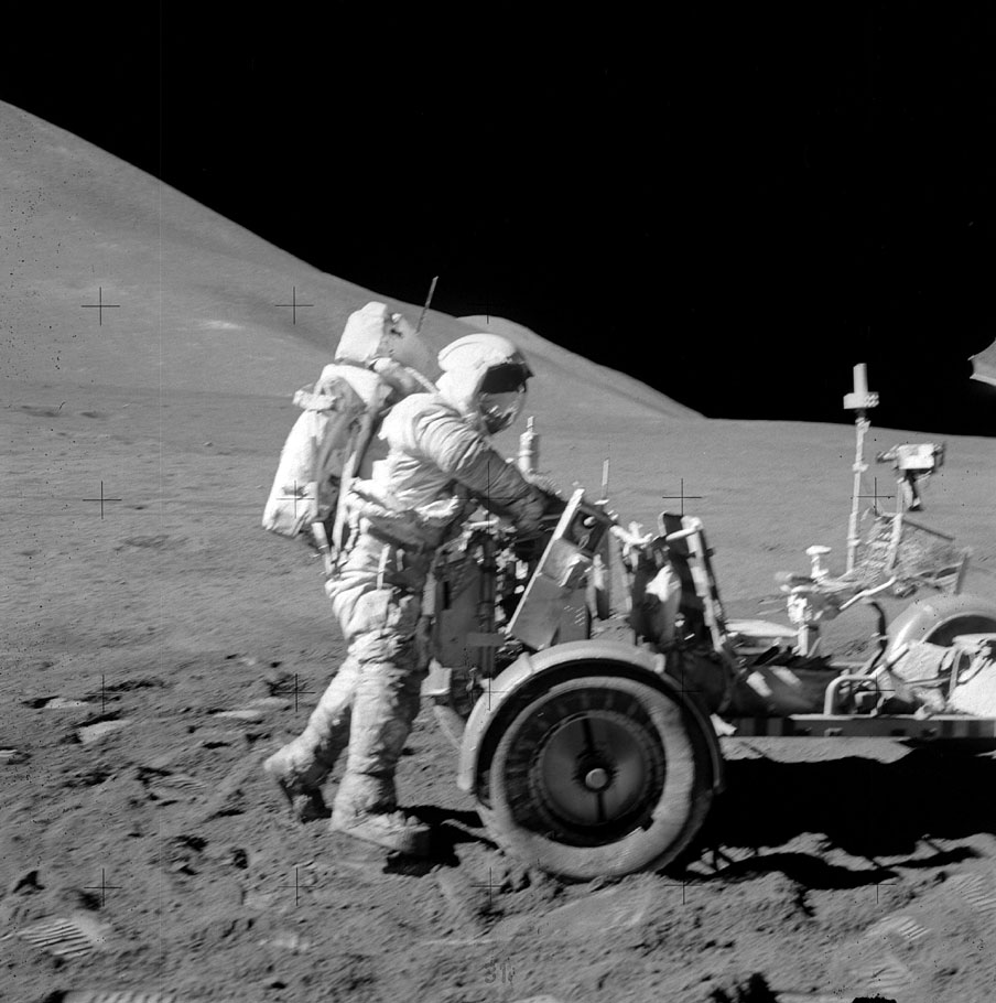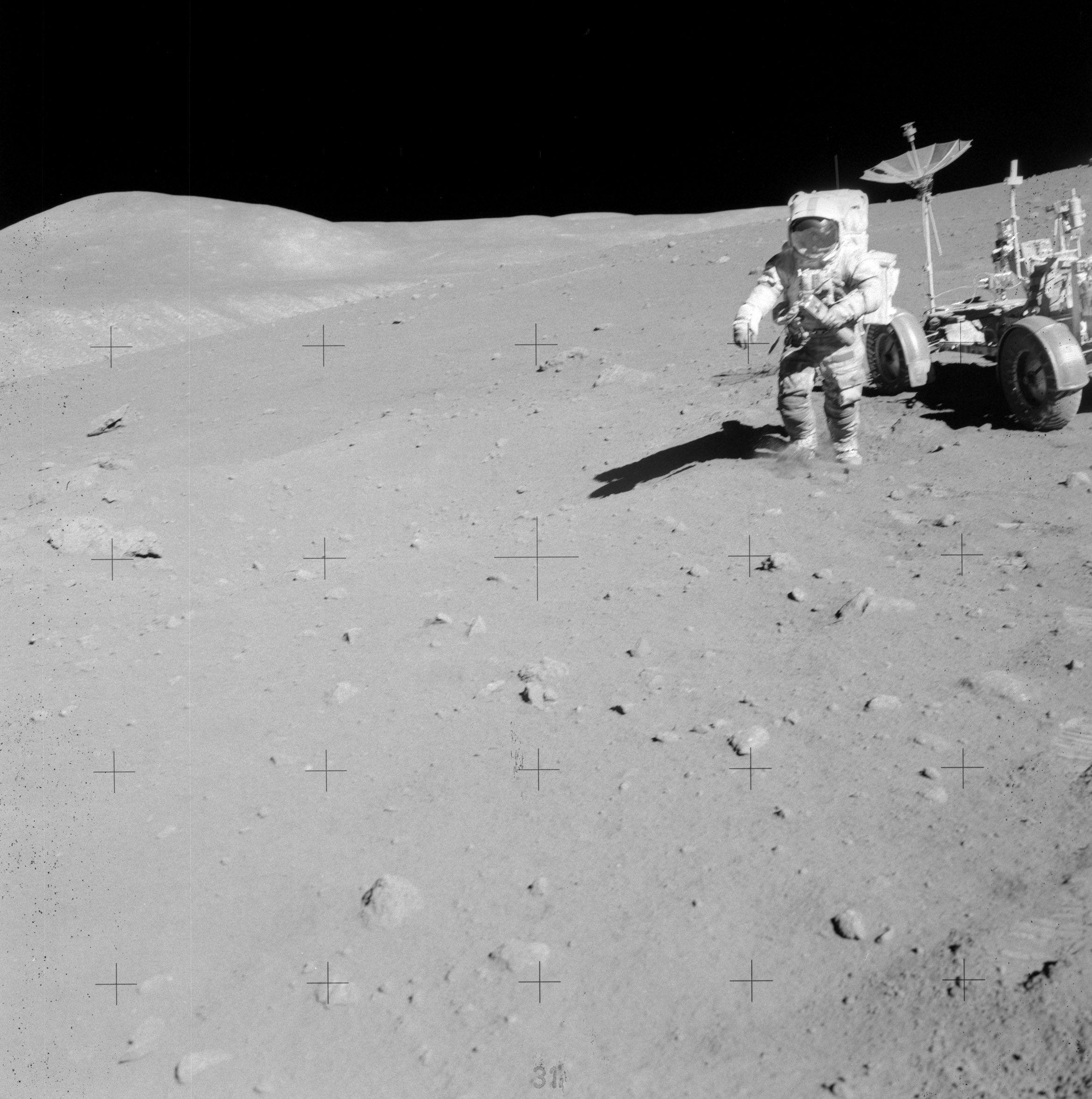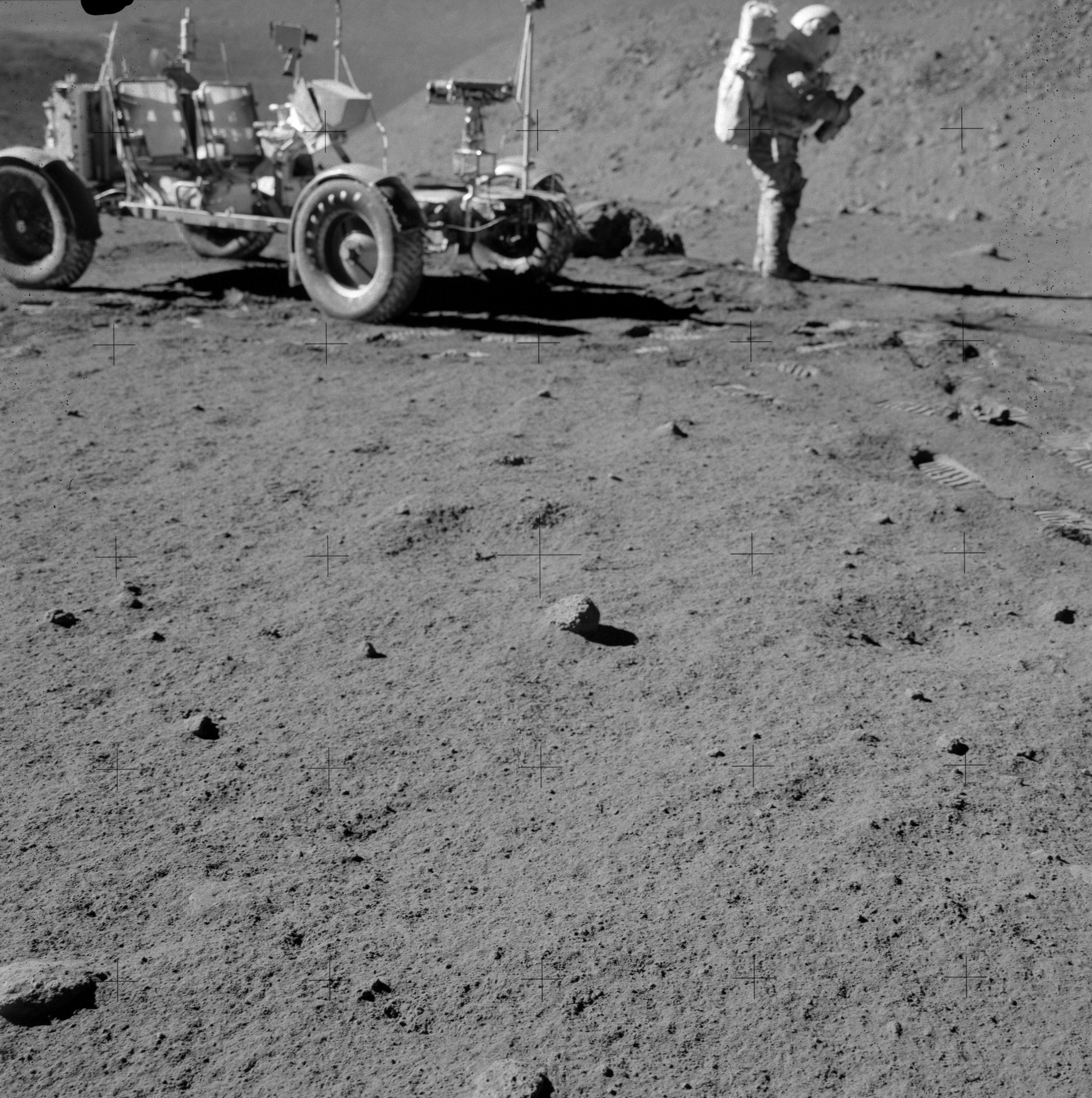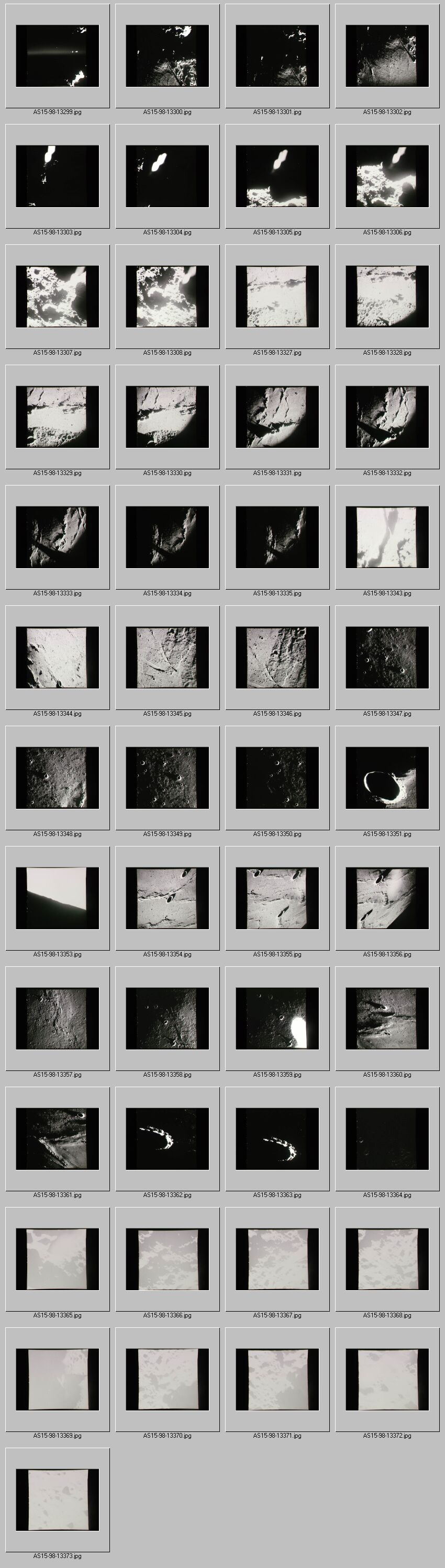 This Apollo 15 Image Library contains all of the pictures taken on the lunar surface by the astronauts together with pictures from pre-flight training and pictures of equipment and the flight hardware. High-resolution version of many of the lunar surface images are included. A source for both thumbnail and low -resolution versions of the lunar surface images is a website compiled by Paul Spudis and colleagues at the Lunar and Planetary Institute in Houston.