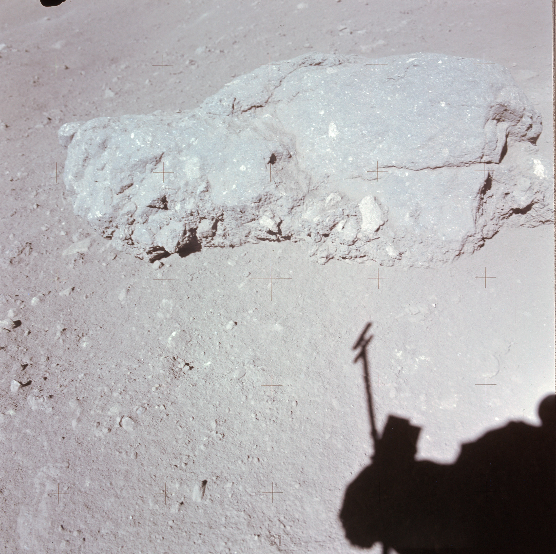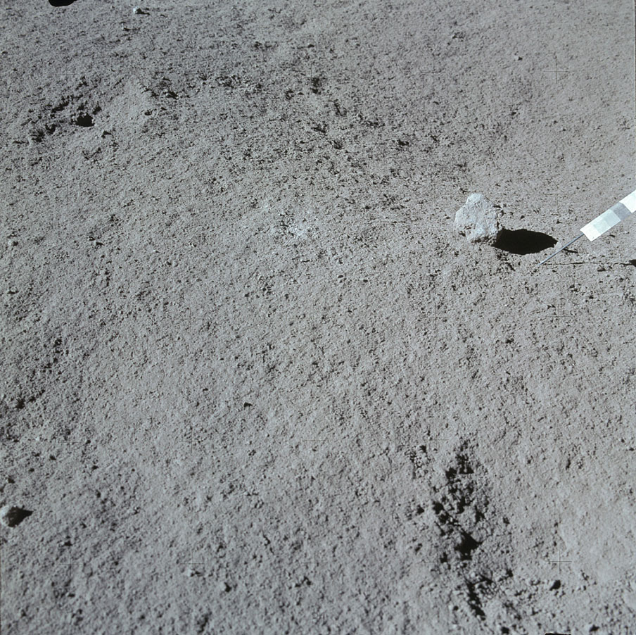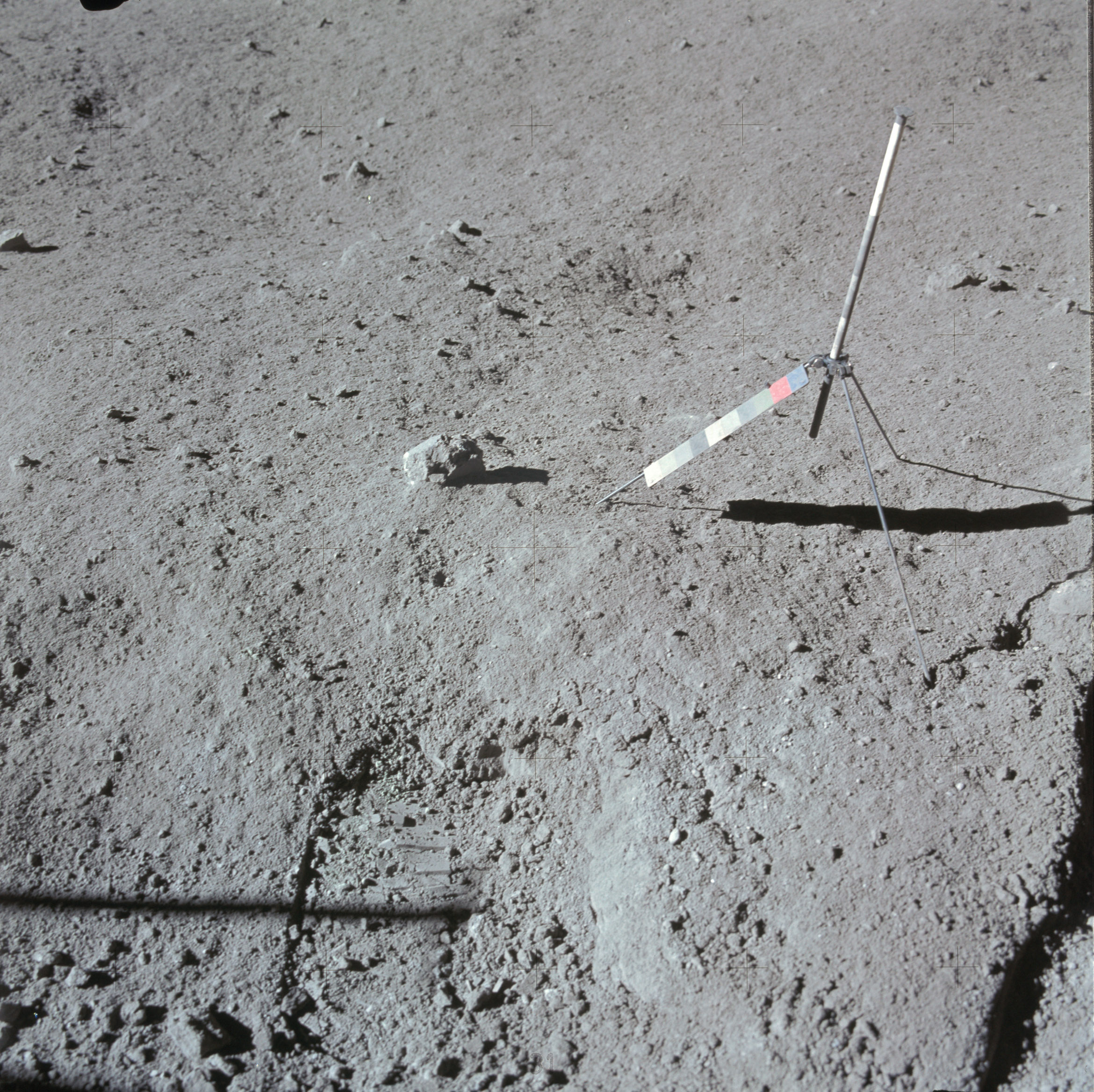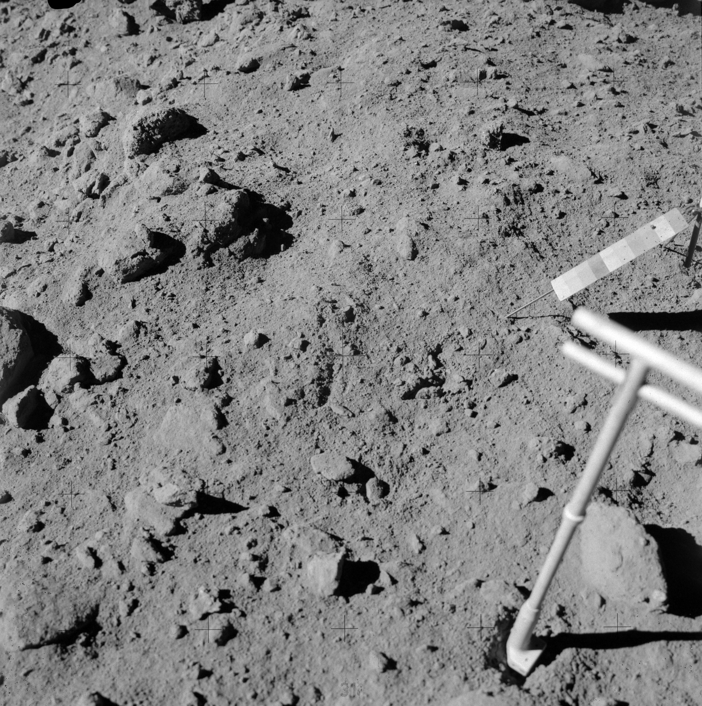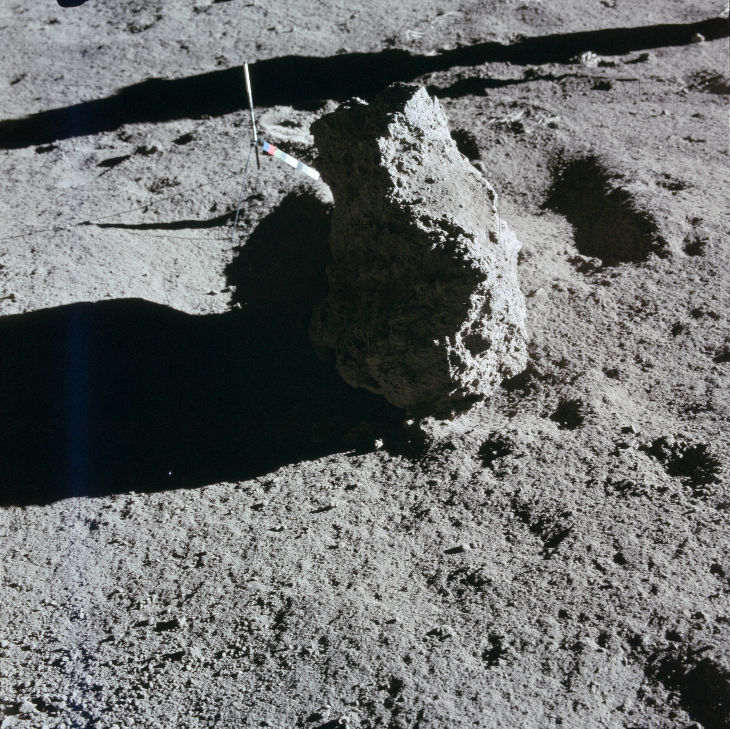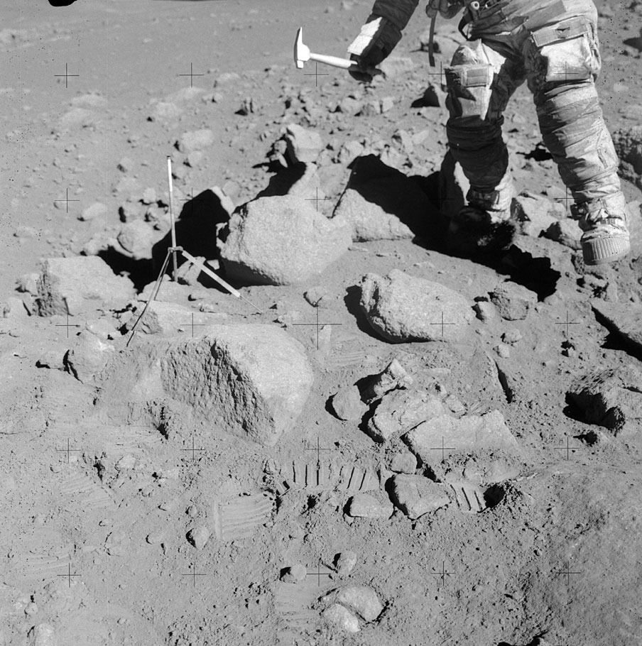 Second view of Great Scott. The cube at the lower right is one inch (2.54 cm) on eash side.S71-43392 (10 Mb or 0.5 Mb)