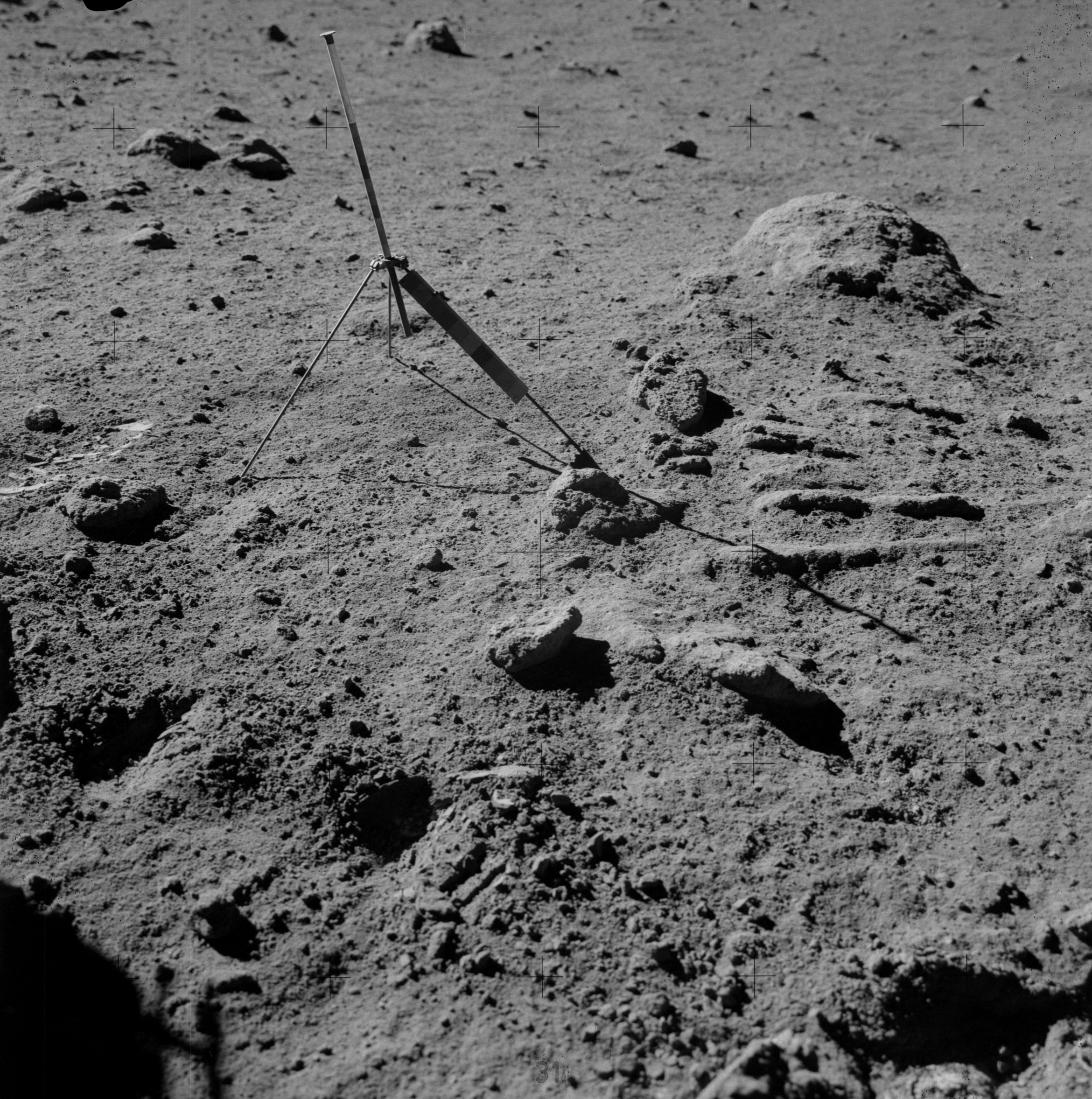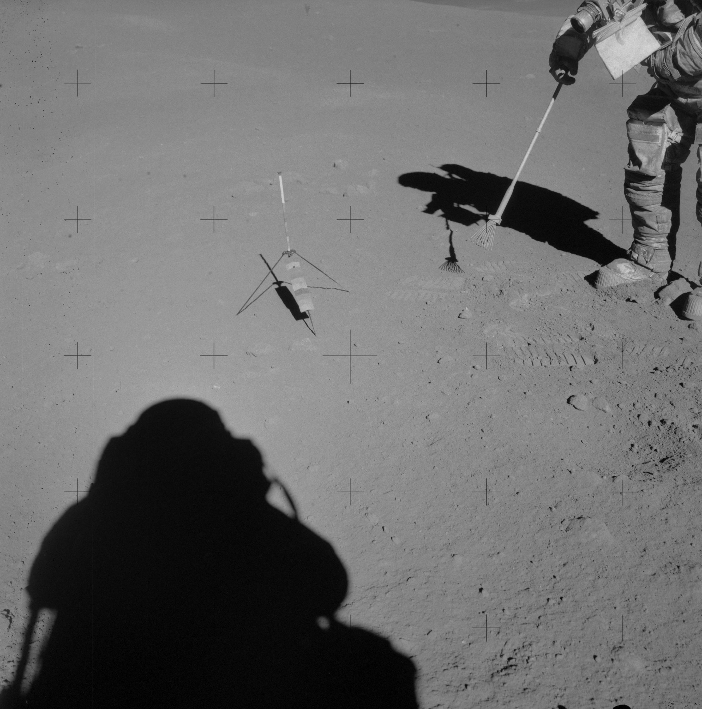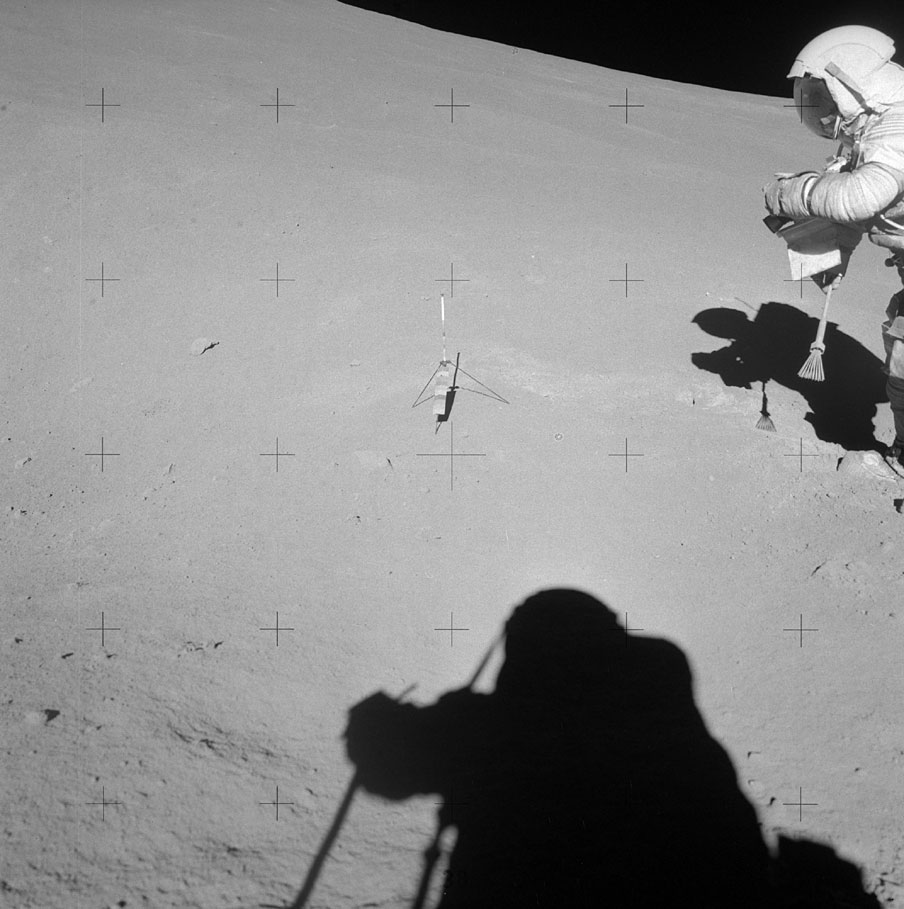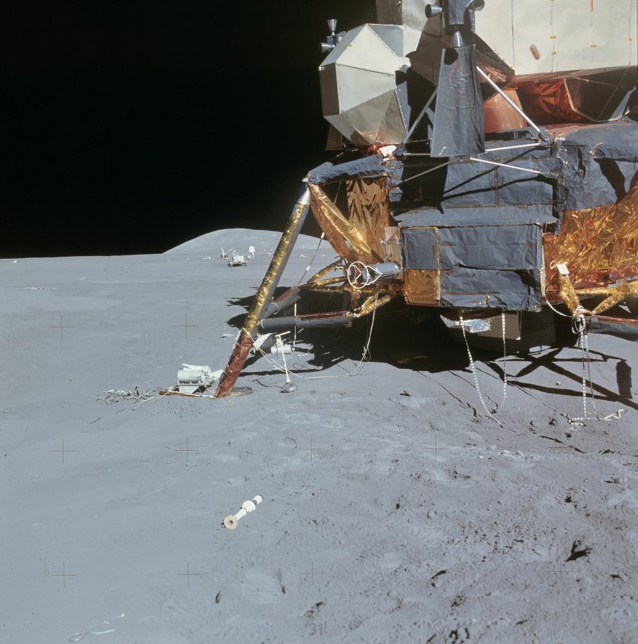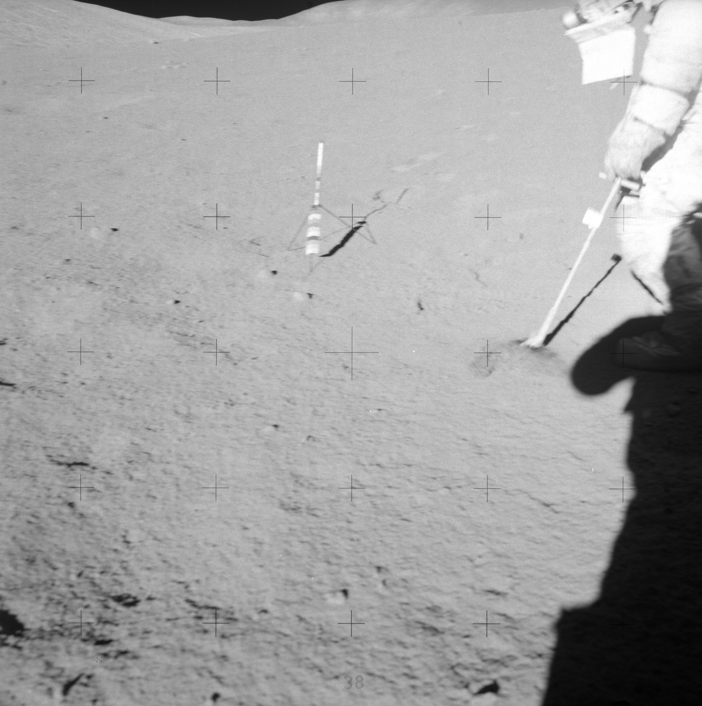 Third view of Great Scott. The cube at the lower right is one inch (2.54 cm) on eash side.S71-43393 (9 Mb or 0.5 Mb)