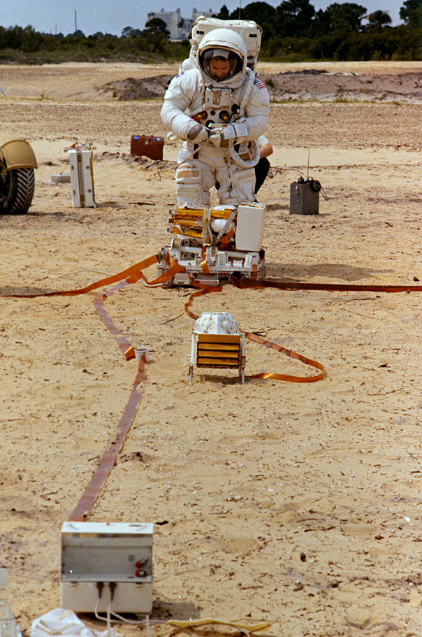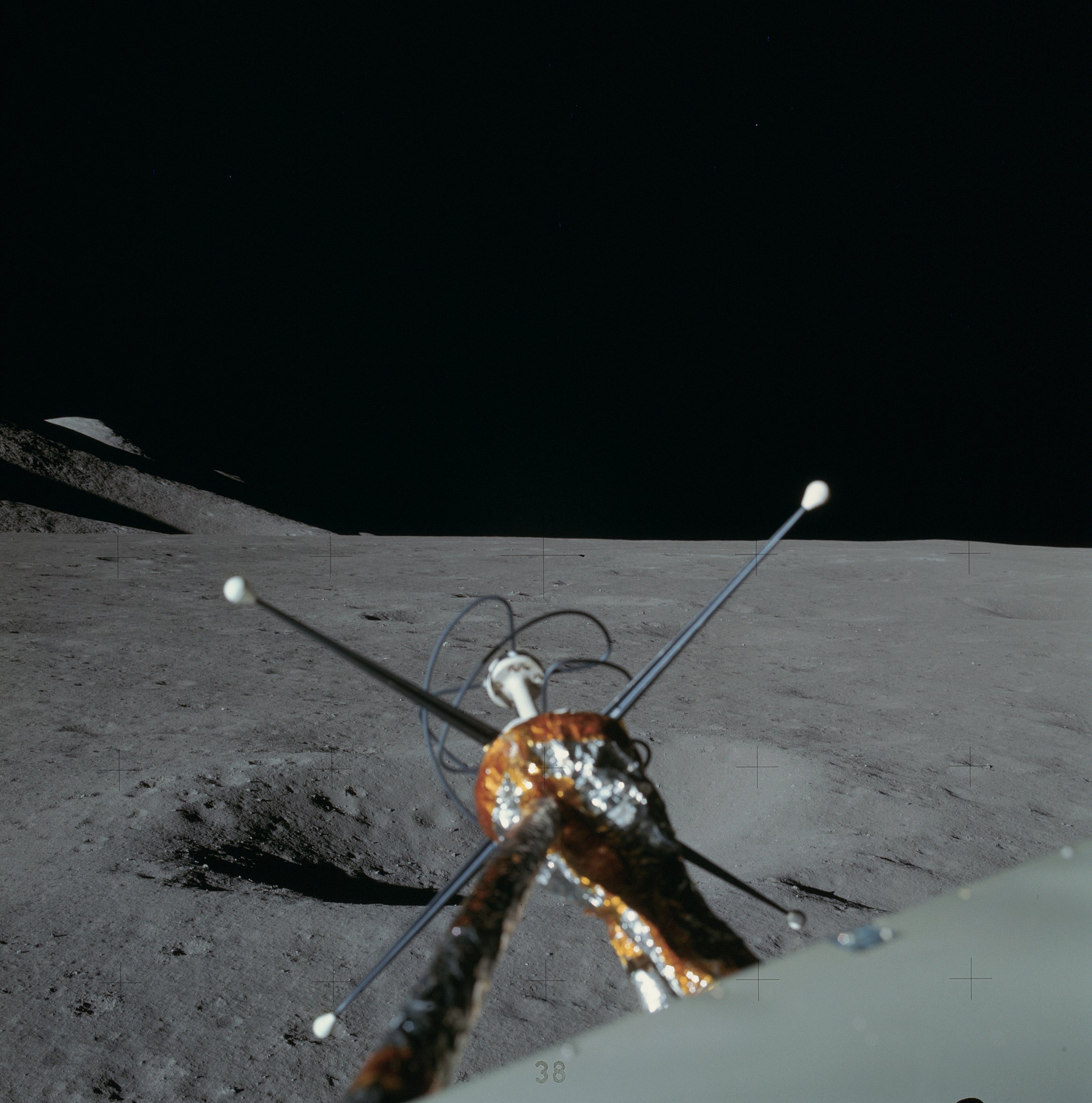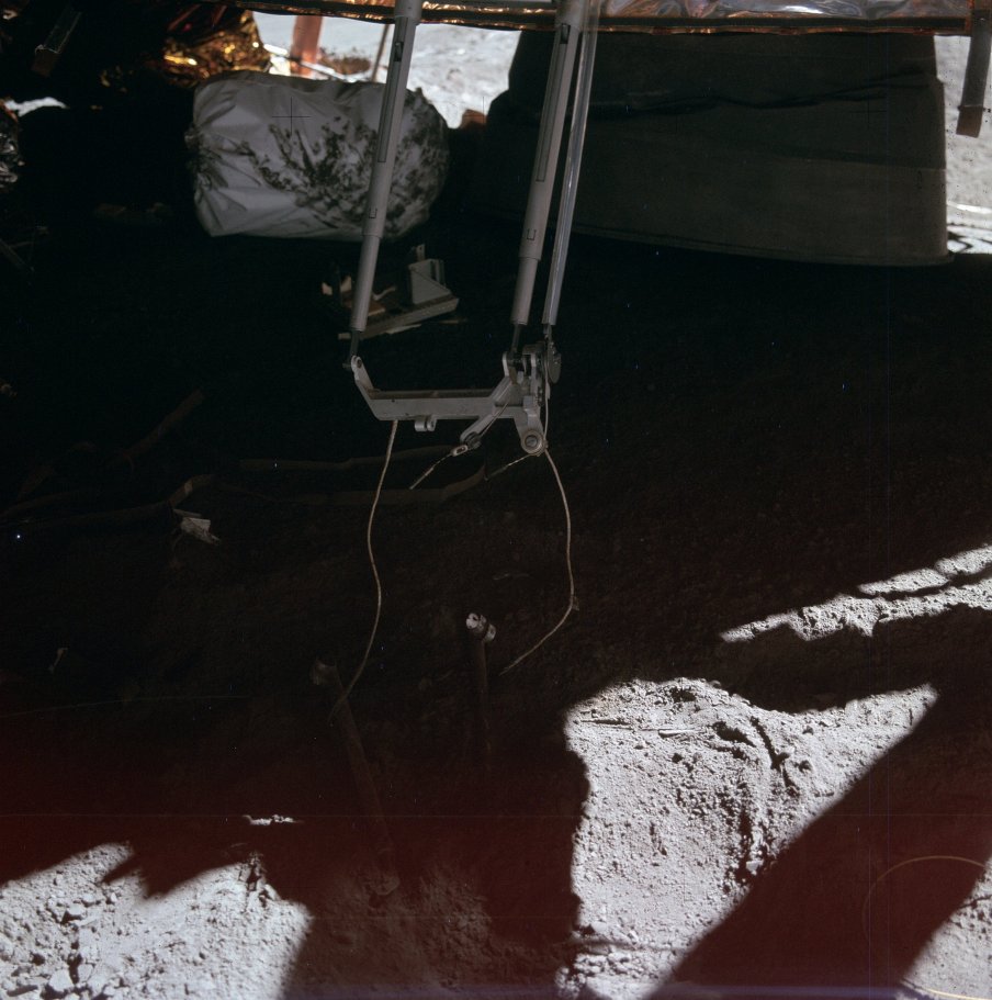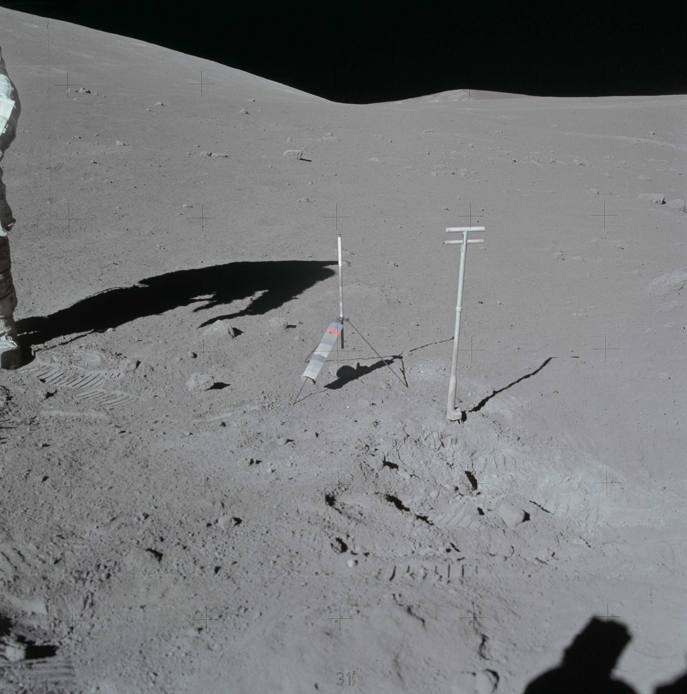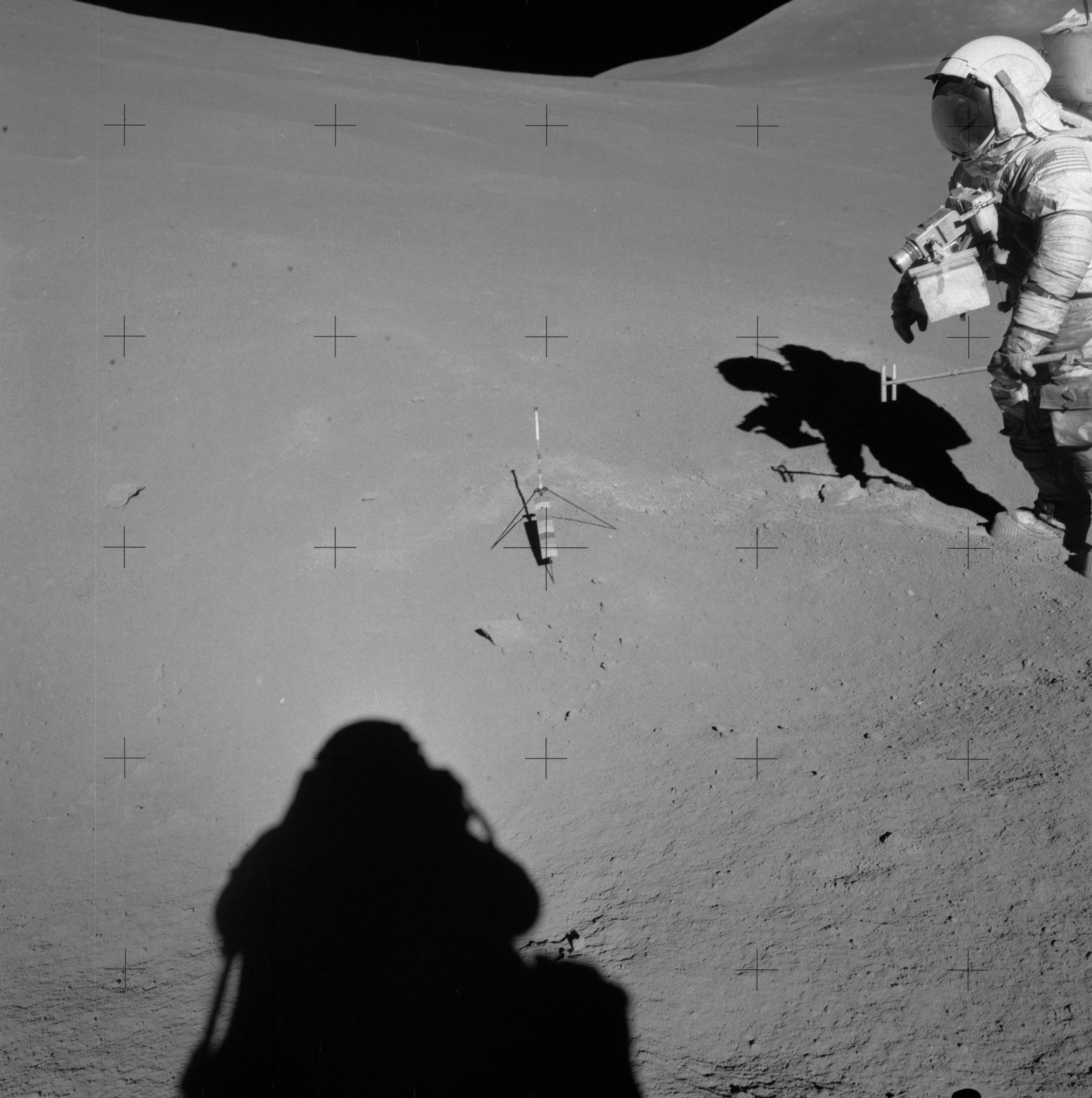 Third view of Great Scott. The cube at the lower right is one inch (2.54 cm) on eash side.S71-43393 (9 Mb or 0.5 Mb)