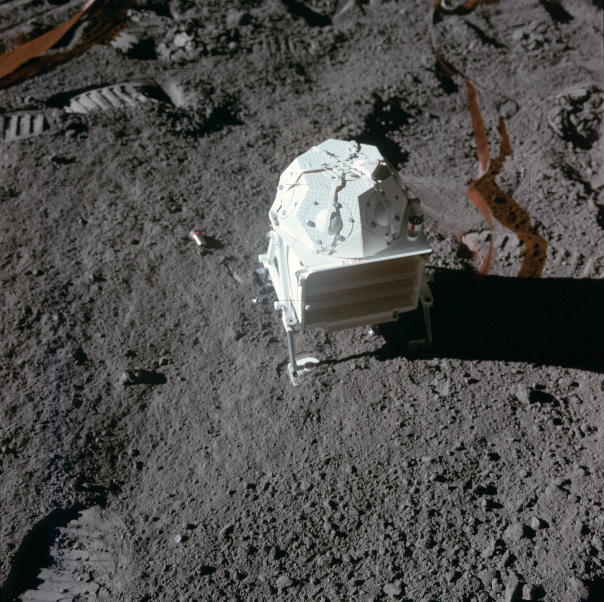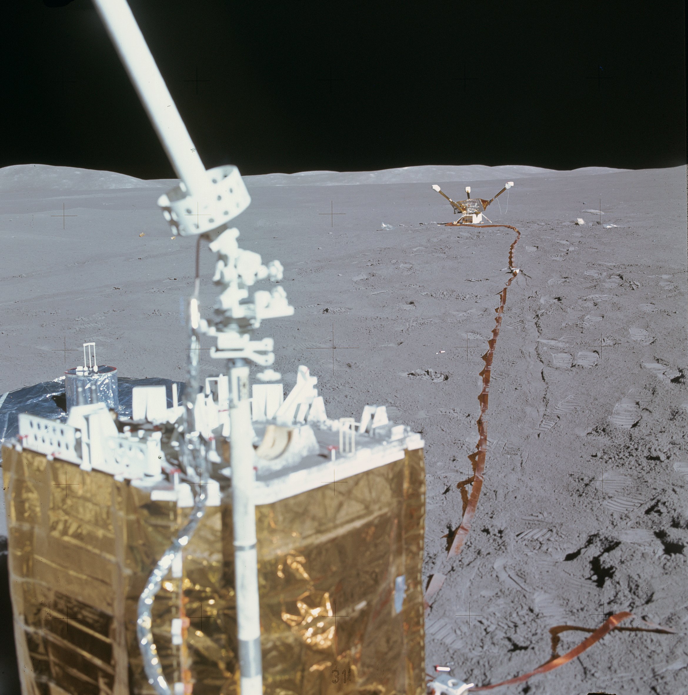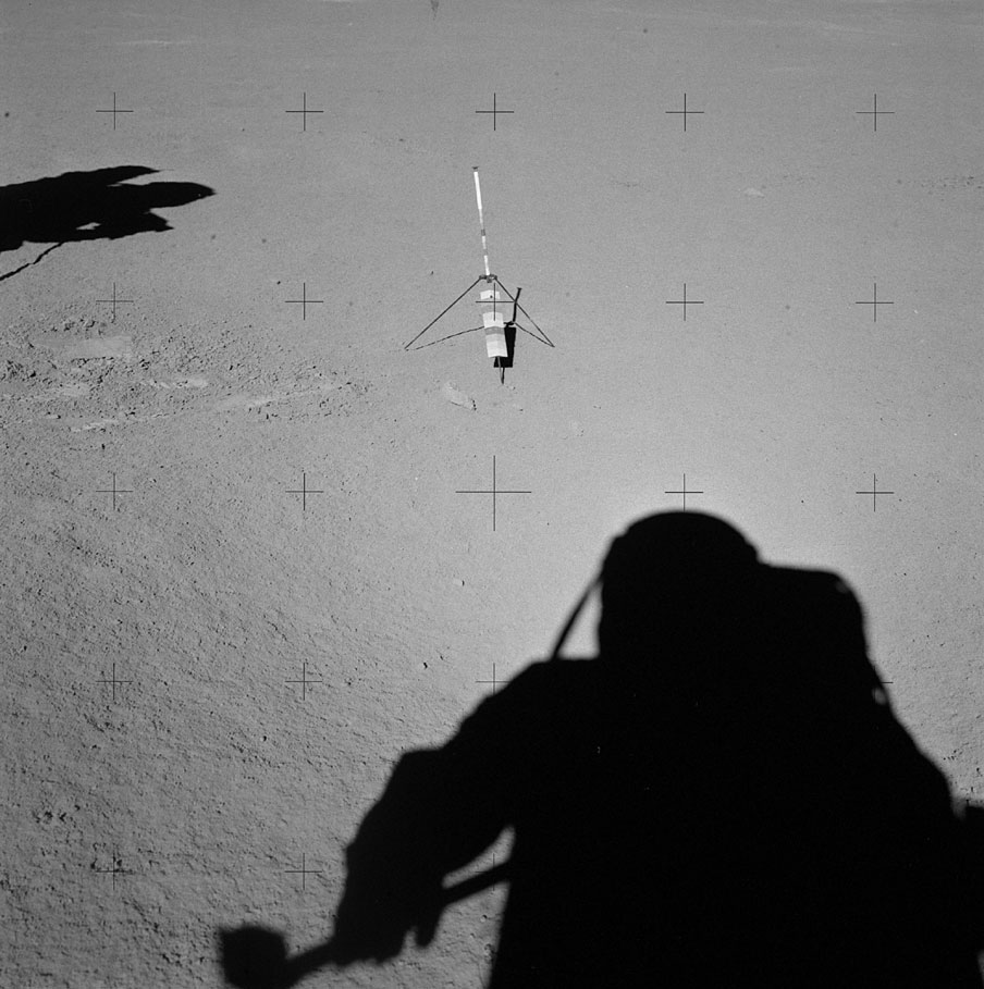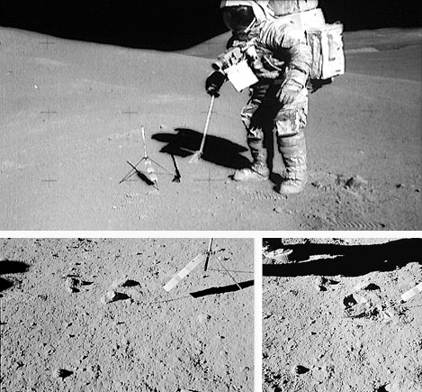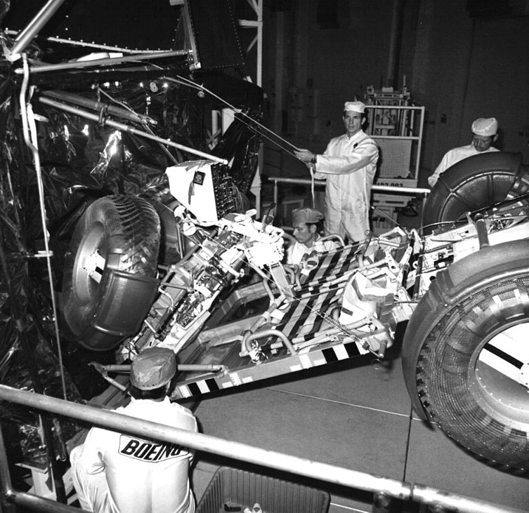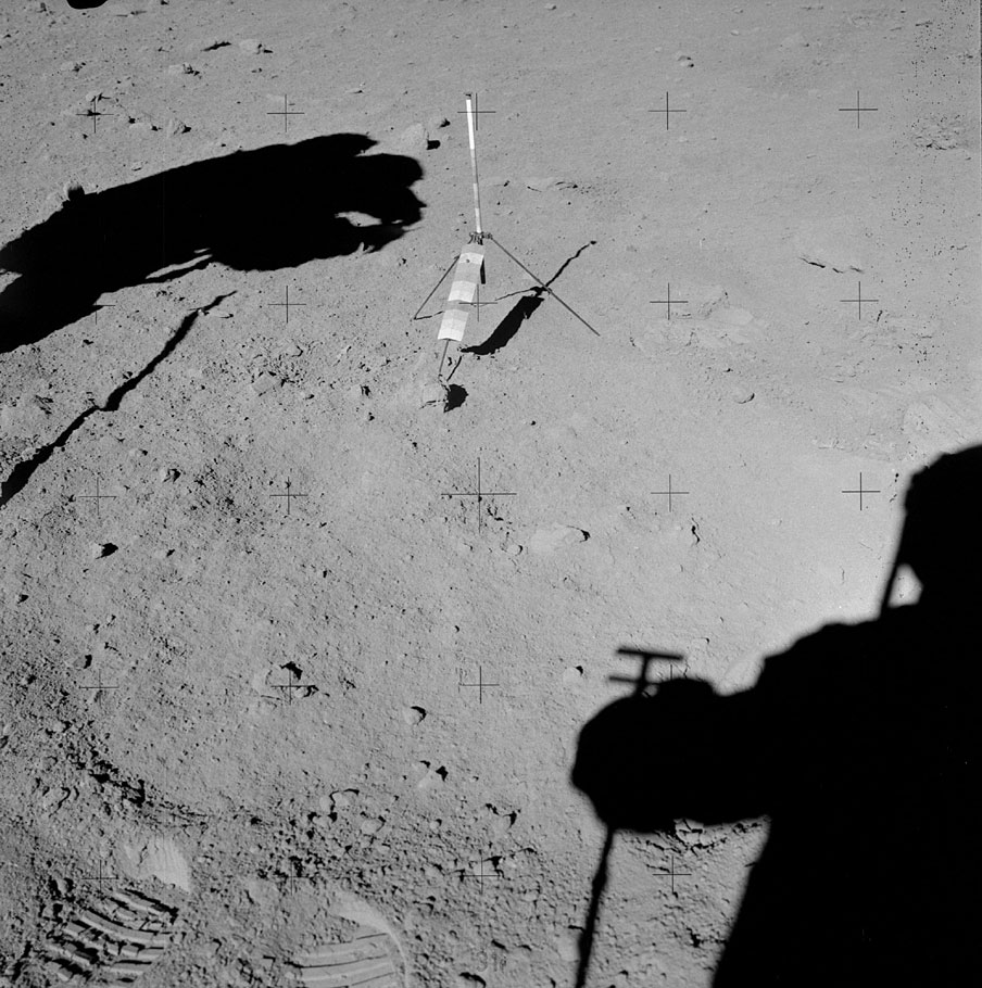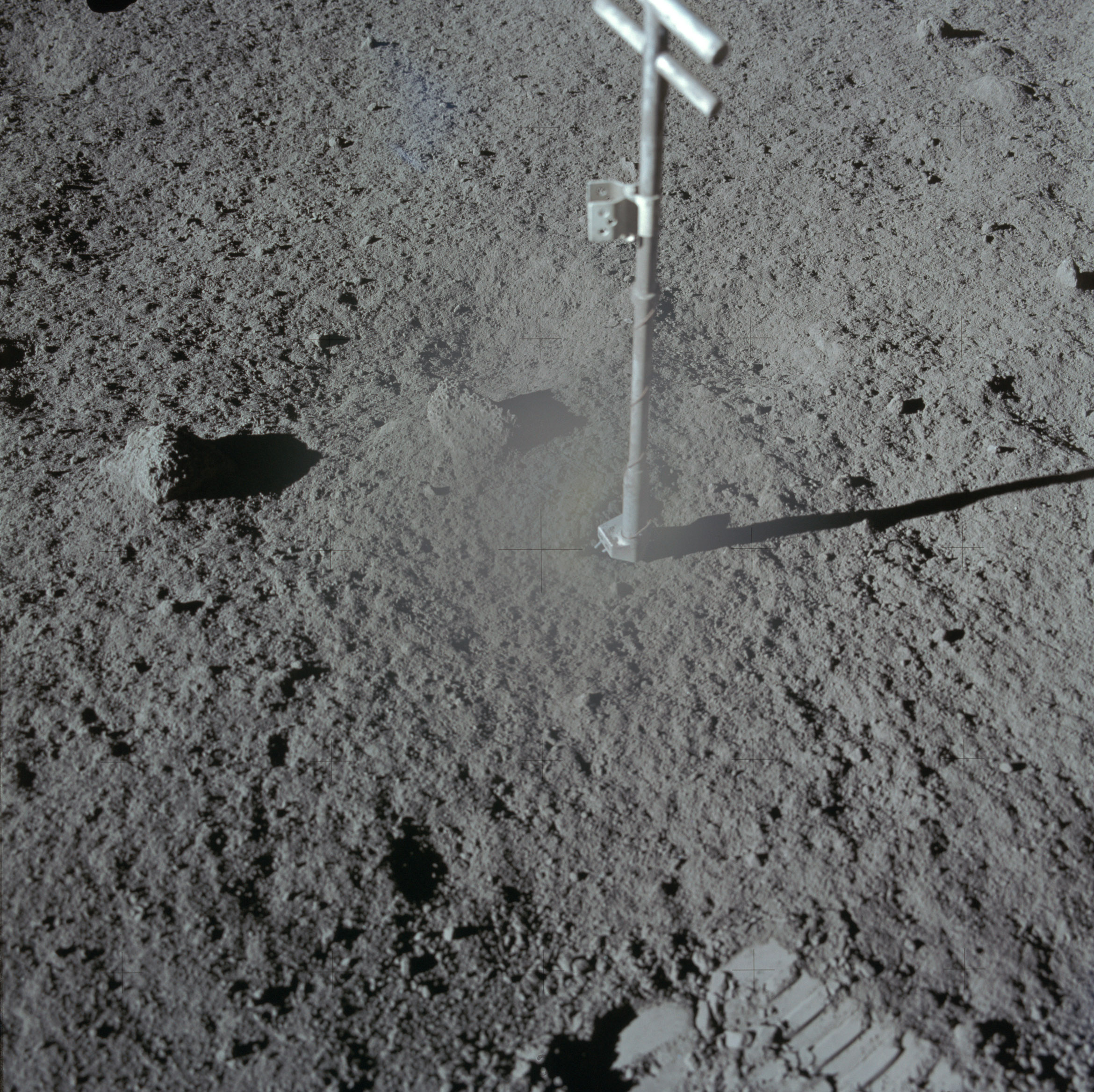 Third view of Great Scott. The cube at the lower right is one inch (2.54 cm) on eash side.S71-43393 (9 Mb or 0.5 Mb)