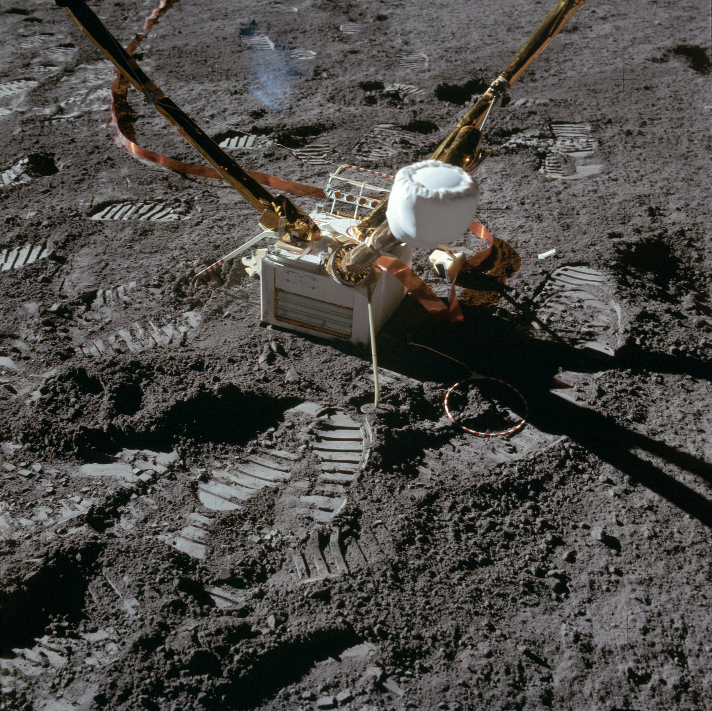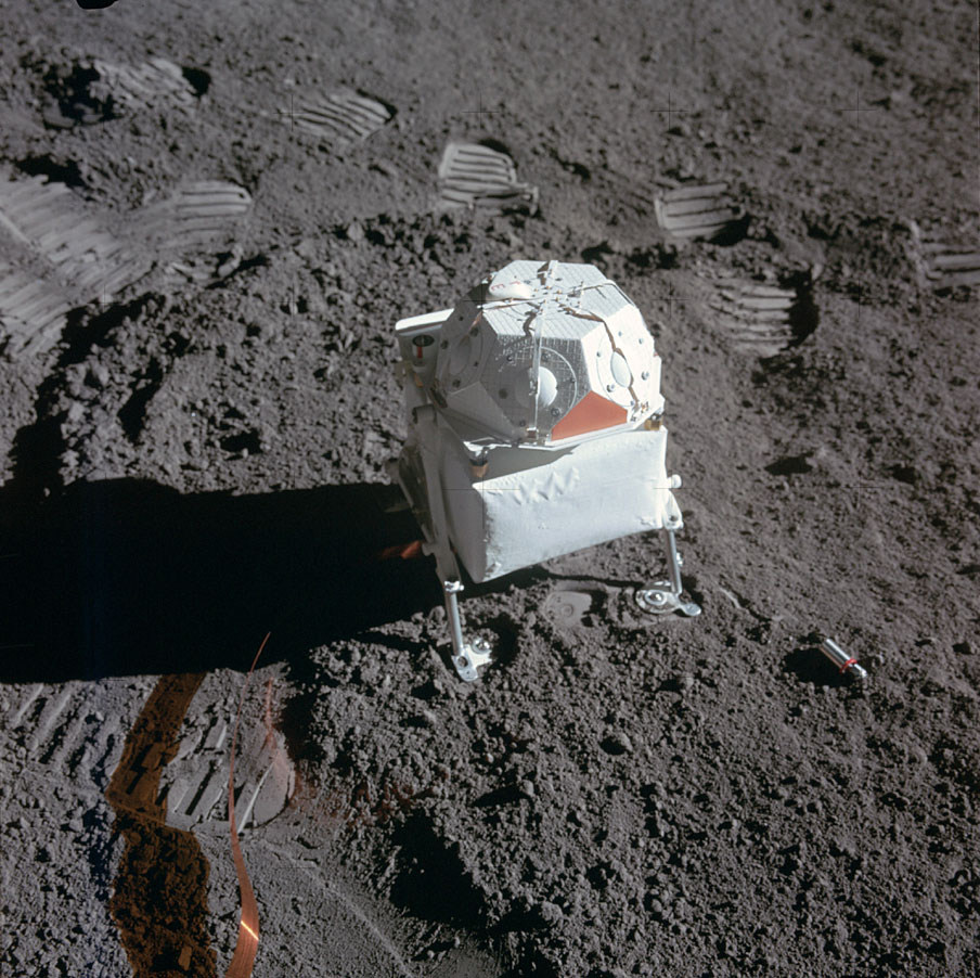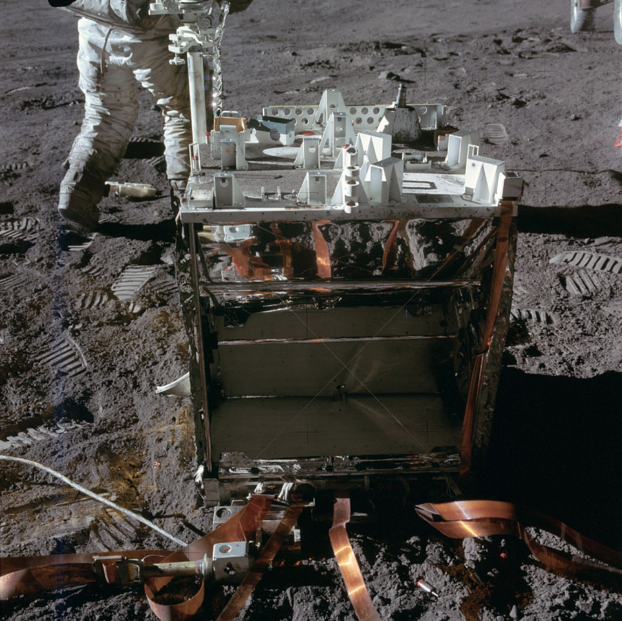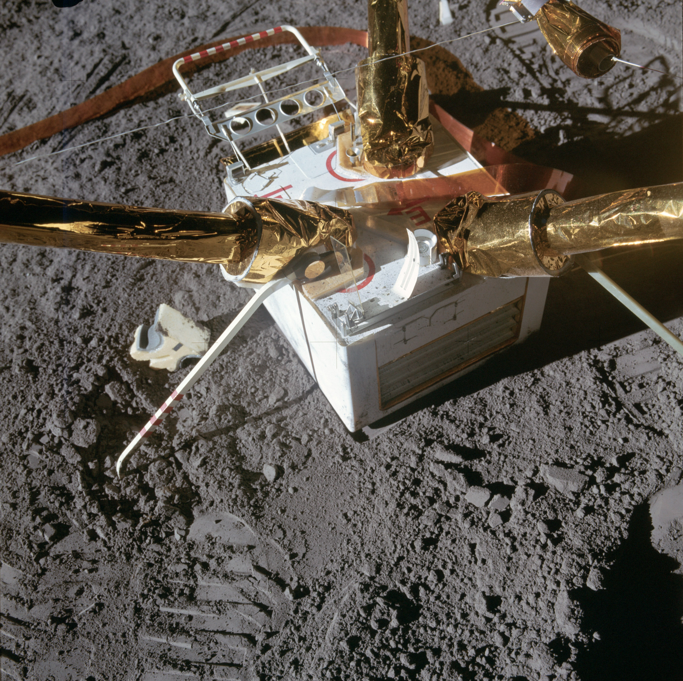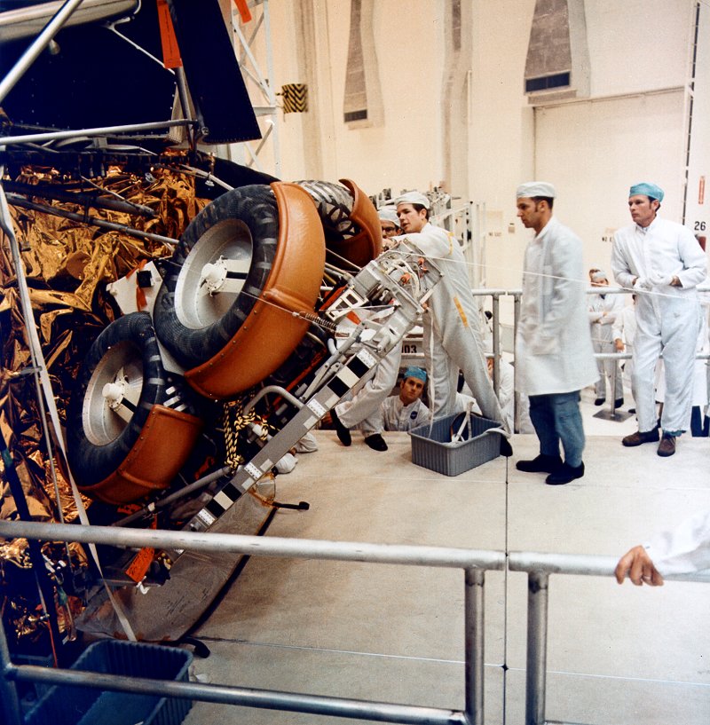 Third view of Great Scott. The cube at the lower right is one inch (2.54 cm) on eash side.S71-43393 (9 Mb or 0.5 Mb)