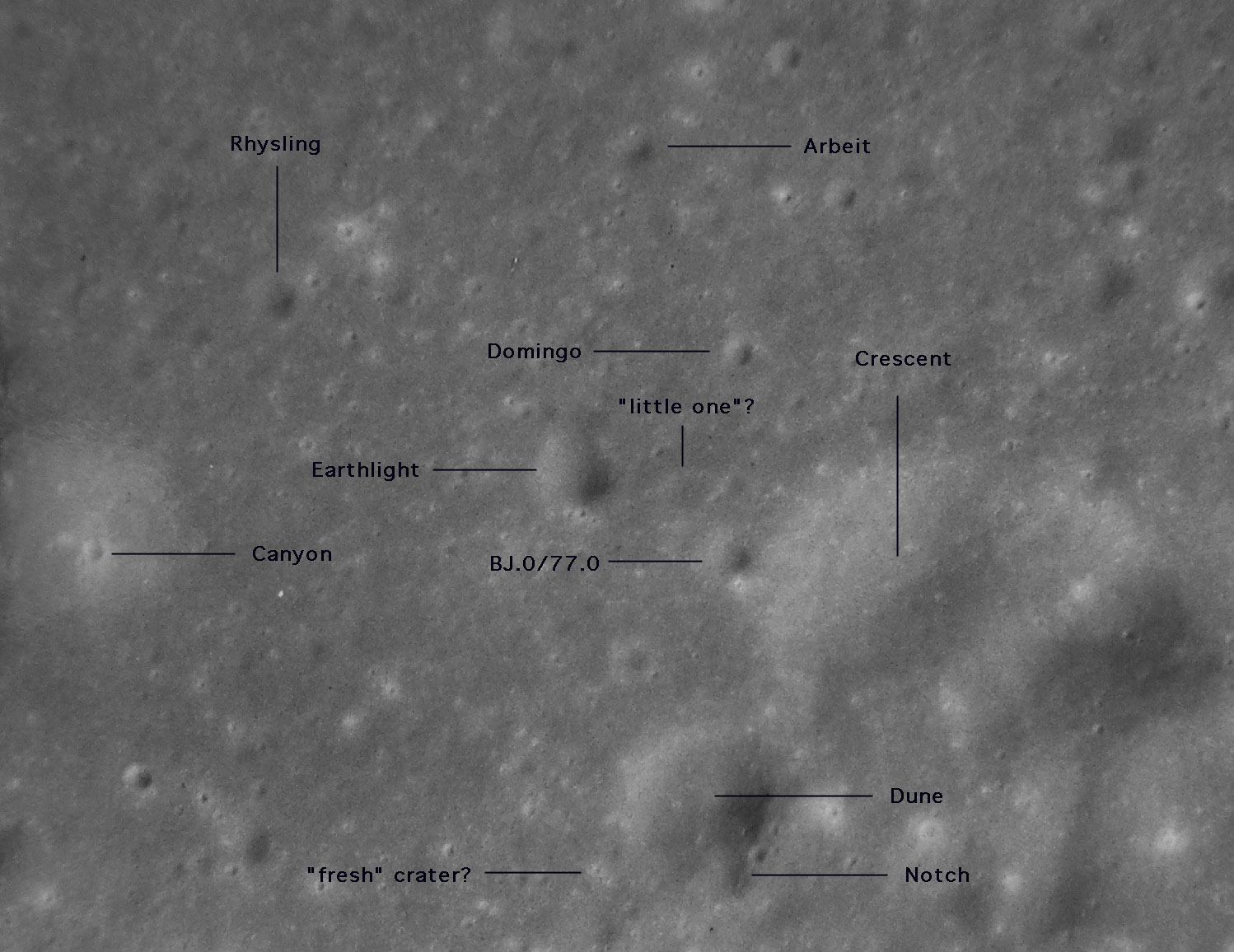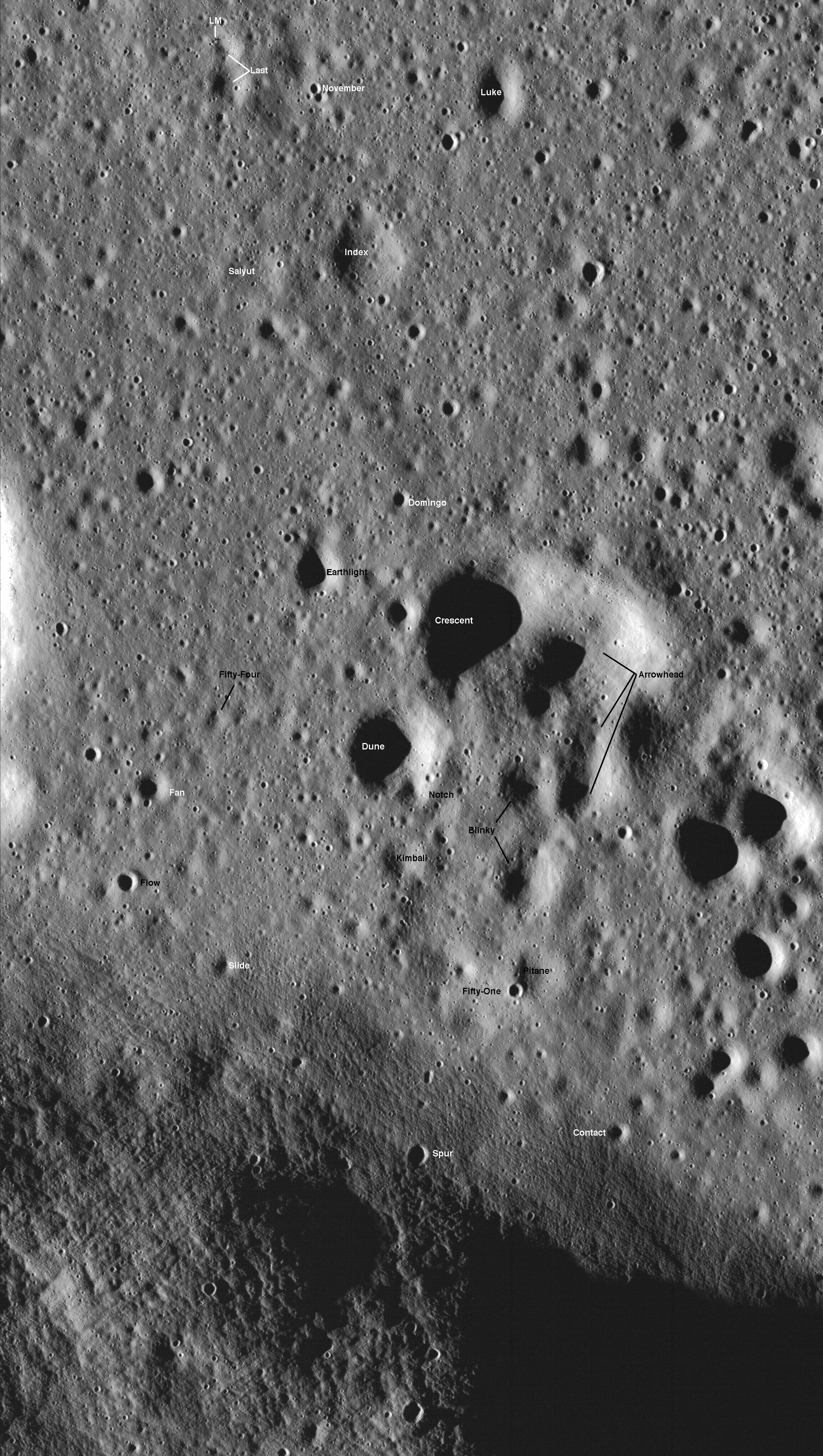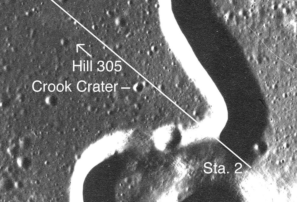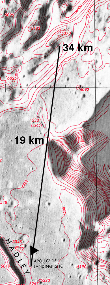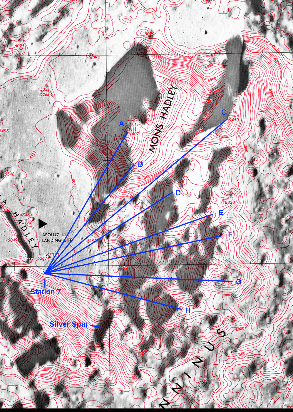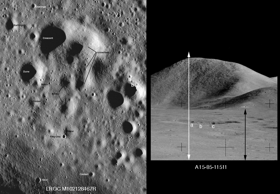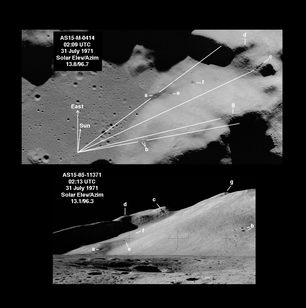 See, also, a labeled version ( 47 Mb ) with the Station 10 pinned down by triangulation of objects on the far wall of the rille identified by comparison between the LROC images and the 500-mm Hasselblad sequences Dave Scott took from Station 10.