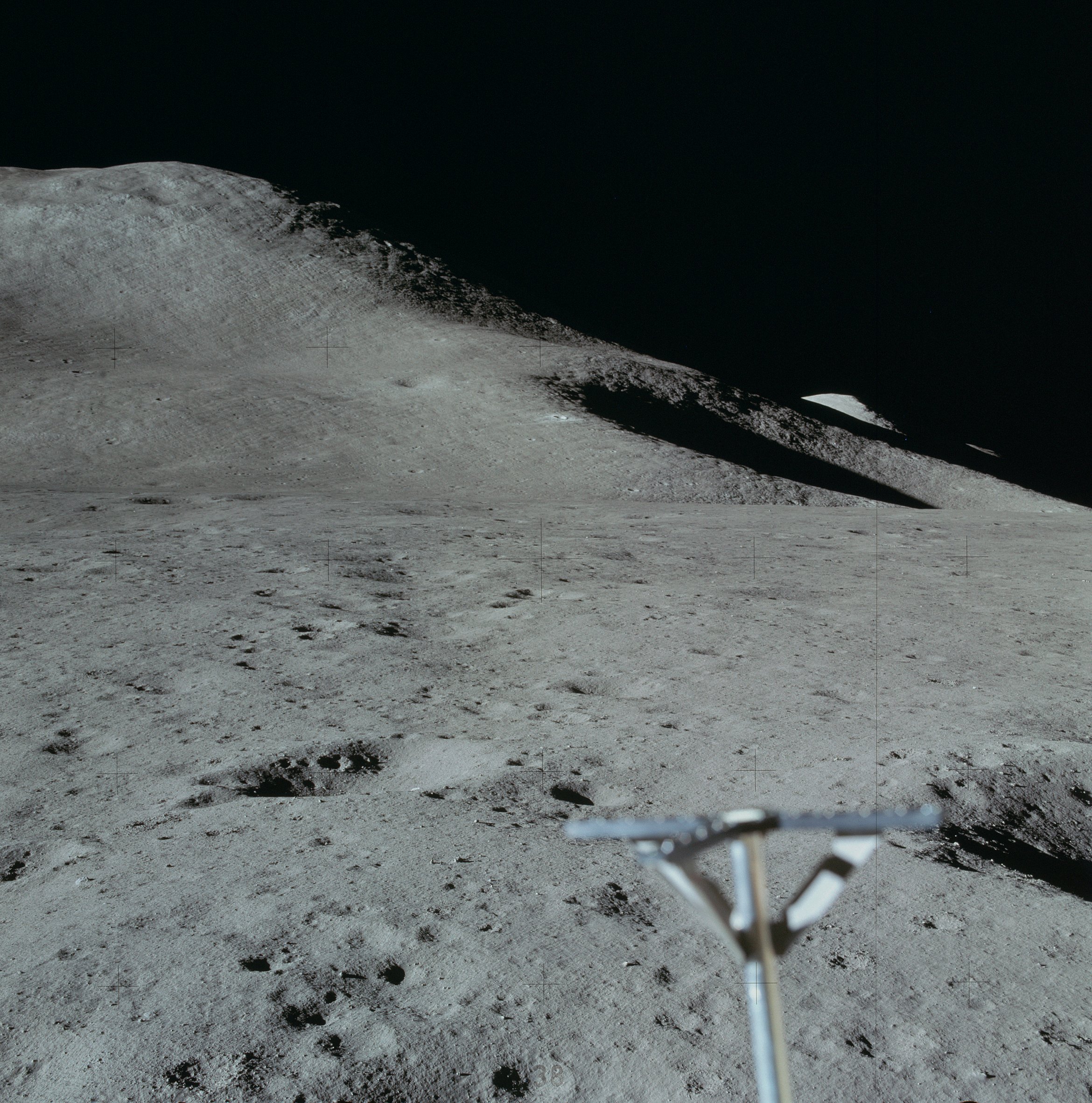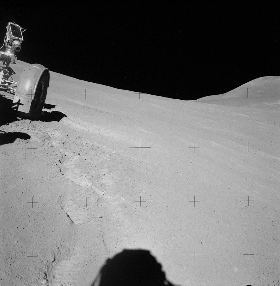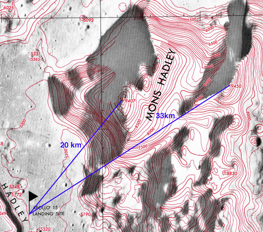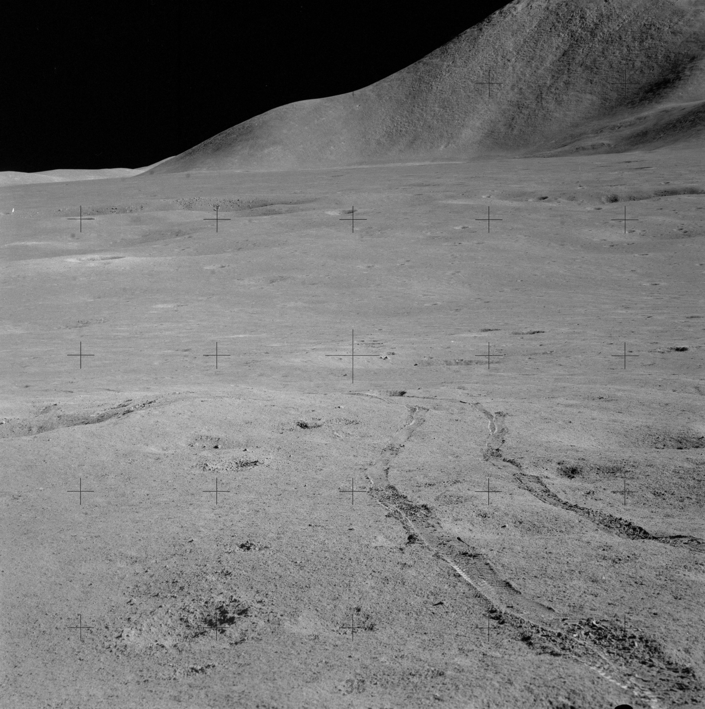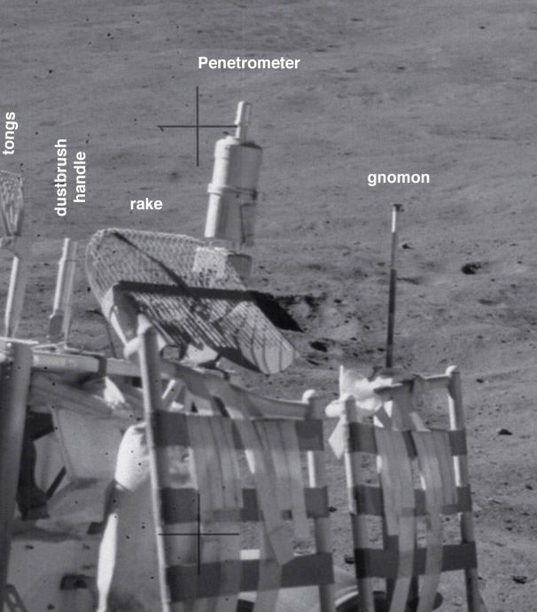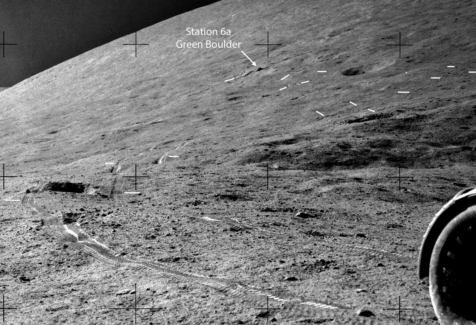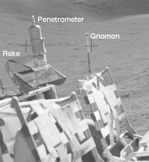 See, also, a labeled version ( 47 Mb ) with the Station 10 pinned down by triangulation of objects on the far wall of the rille identified by comparison between the LROC images and the 500-mm Hasselblad sequences Dave Scott took from Station 10.